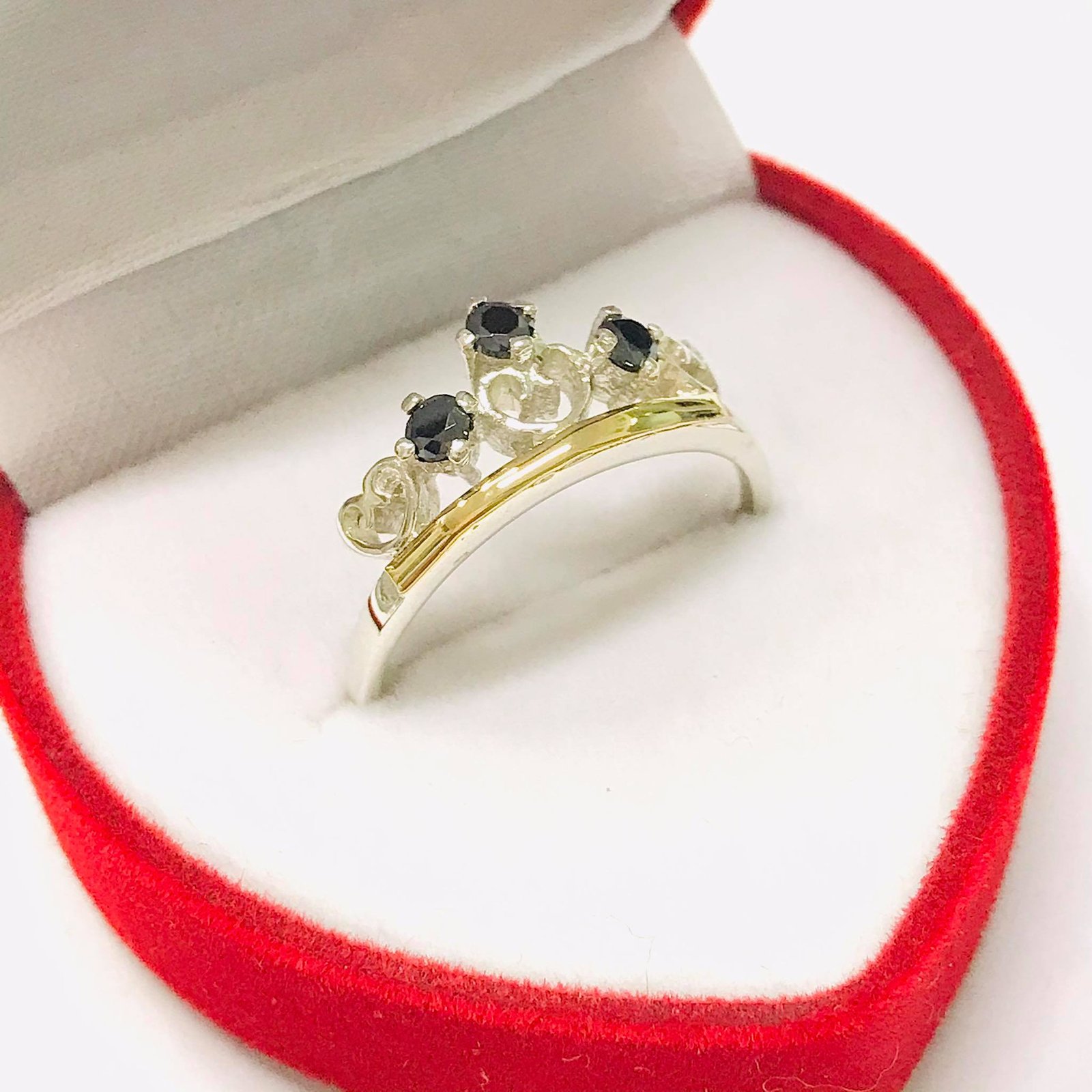 Anillo Coronita con piedras negras Plata y Oro