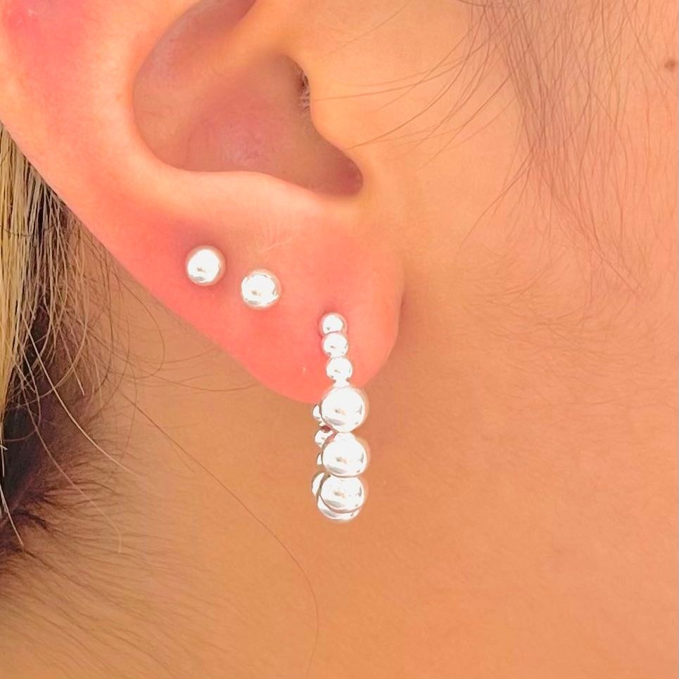 Aros Media Argolla grande Con Bolitas Baño de Plata 925