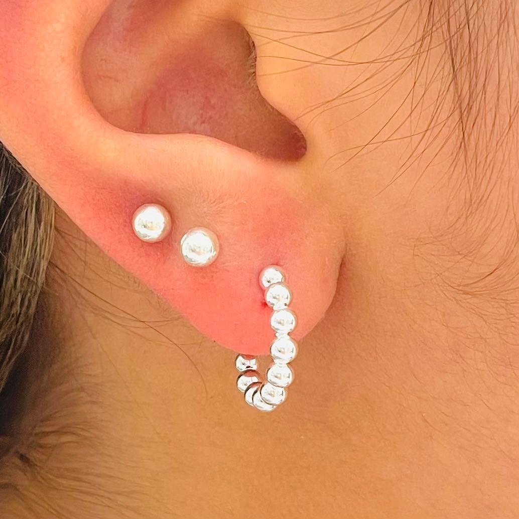 Aros Media Argolla fina Con Bolitas Laminado de Plata 925