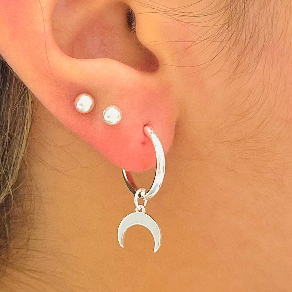 Aros Argolla con dije Luna invertida Laminado de Plata 925