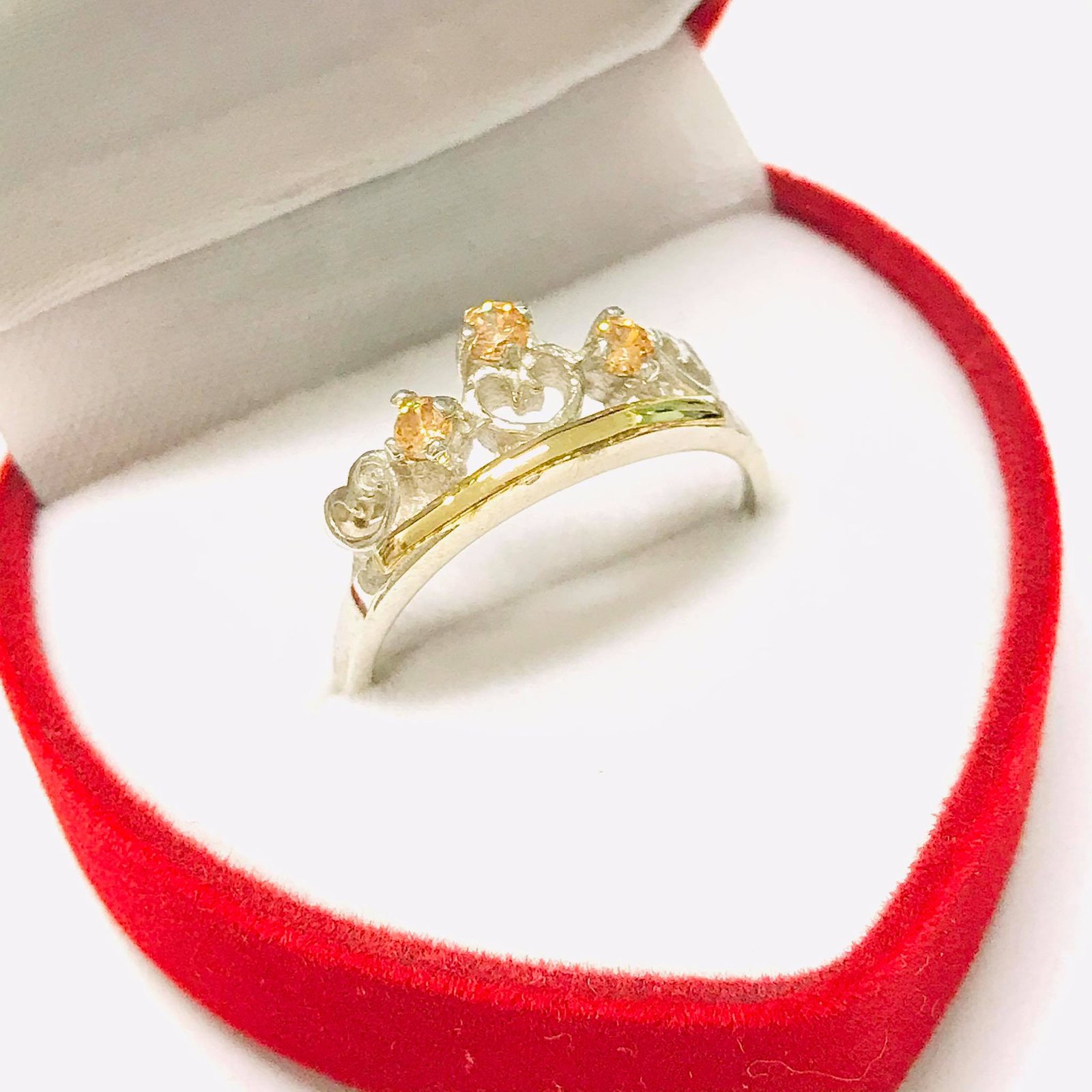 Anillo Coronita con piedras ambar Plata y Oro