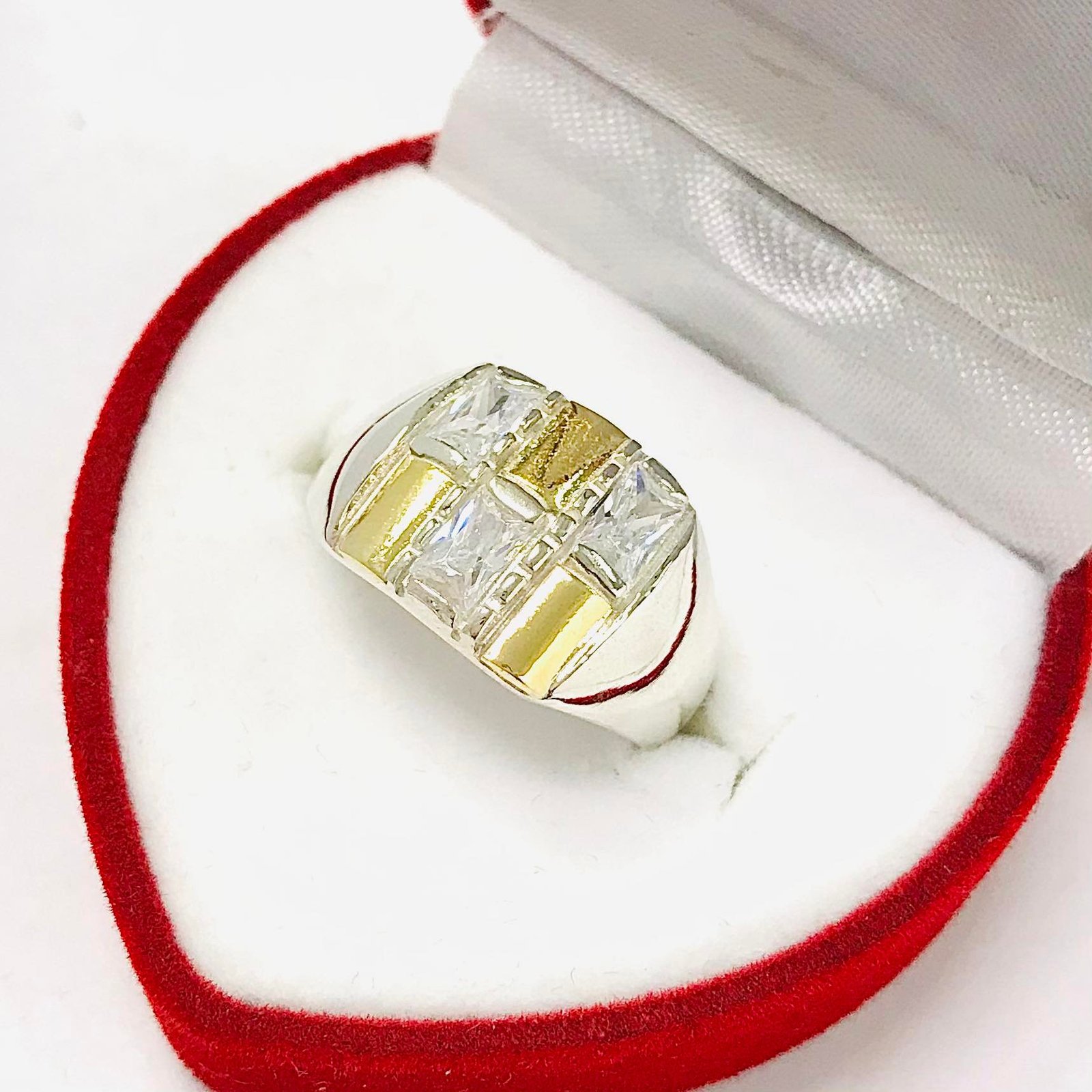 Anillo Aronyan con cubic blanco de Plata y Oro