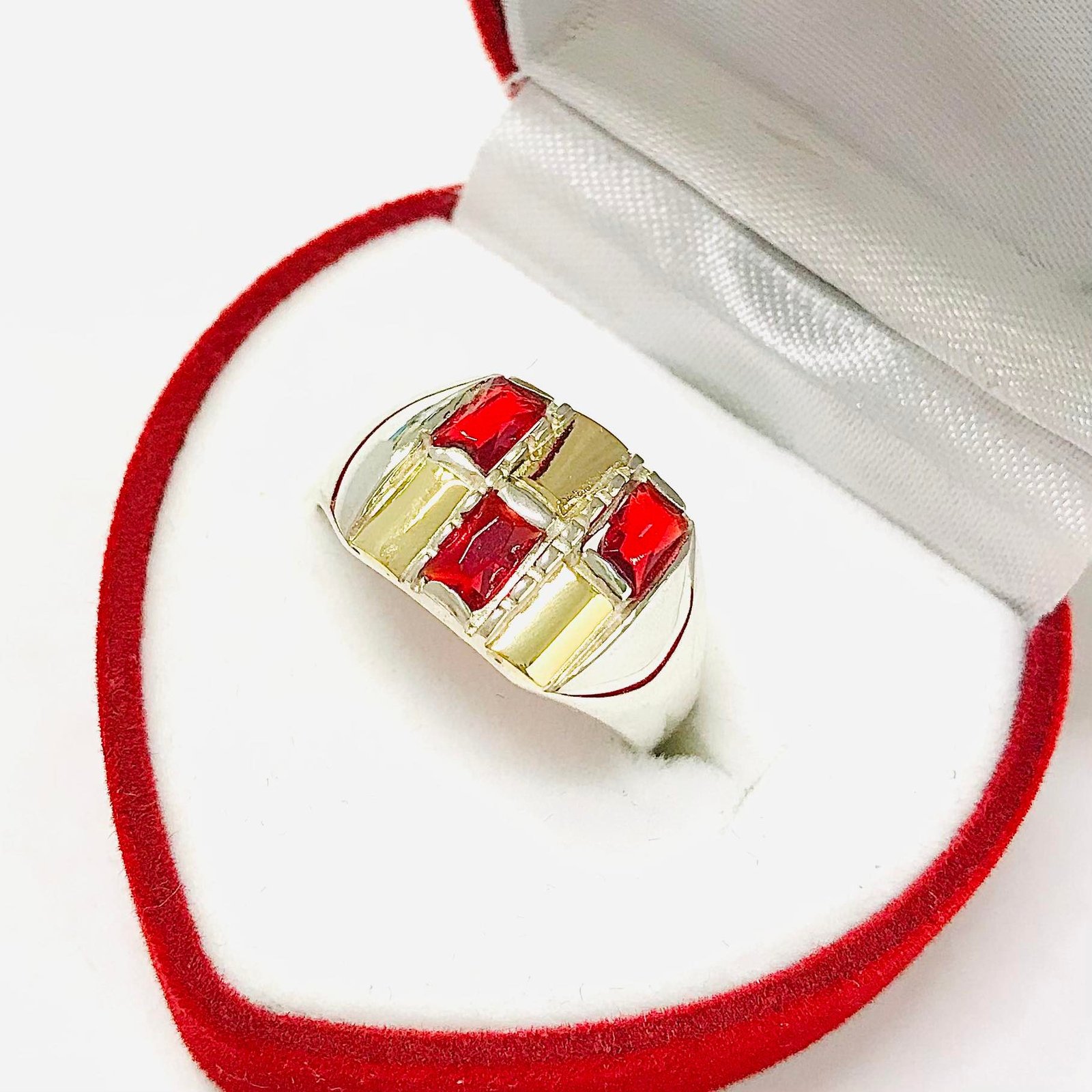 Anillo Aronyan con cubic rubi de Plata y Oro