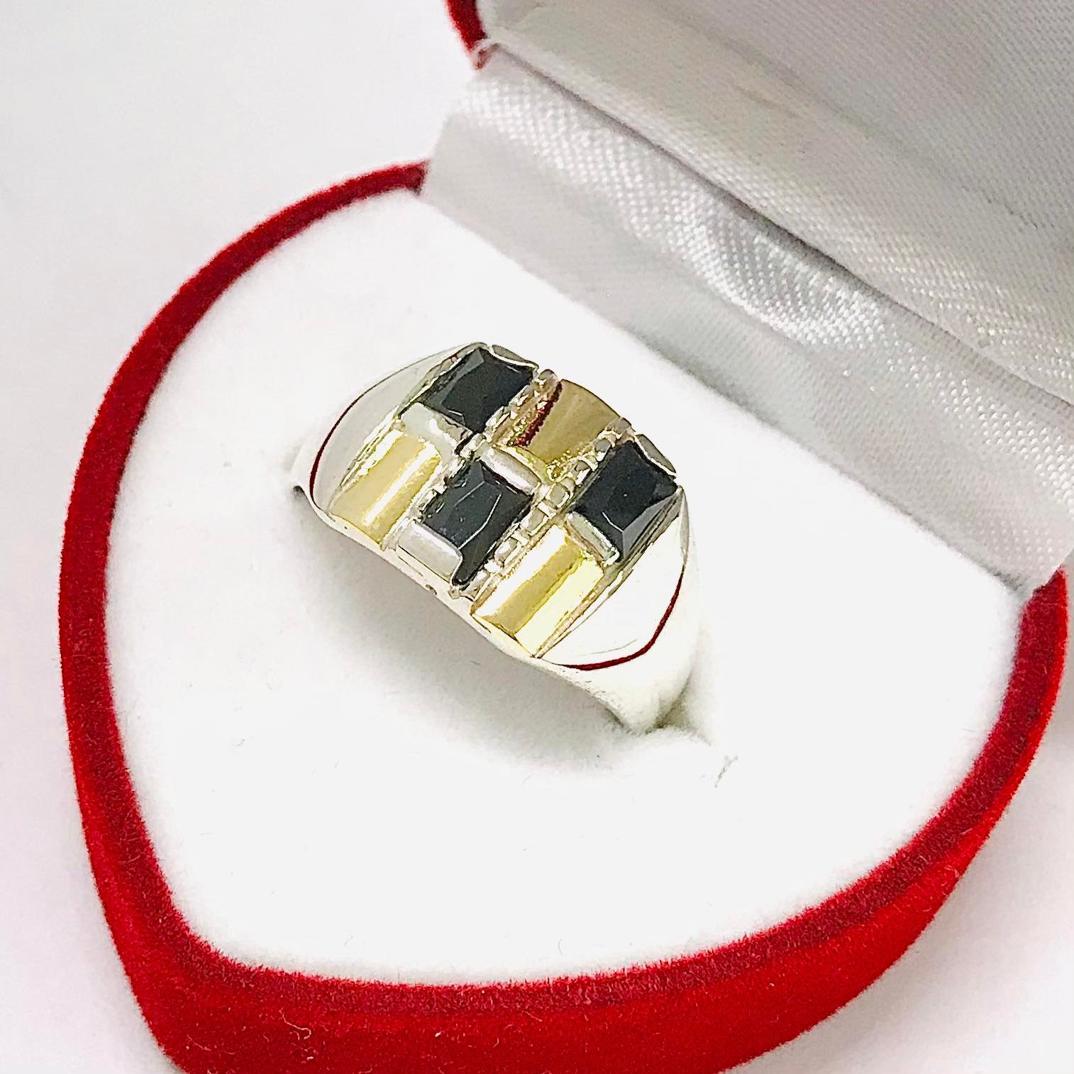 » Anillo Aronyan con cubic negro de Plata y Oro