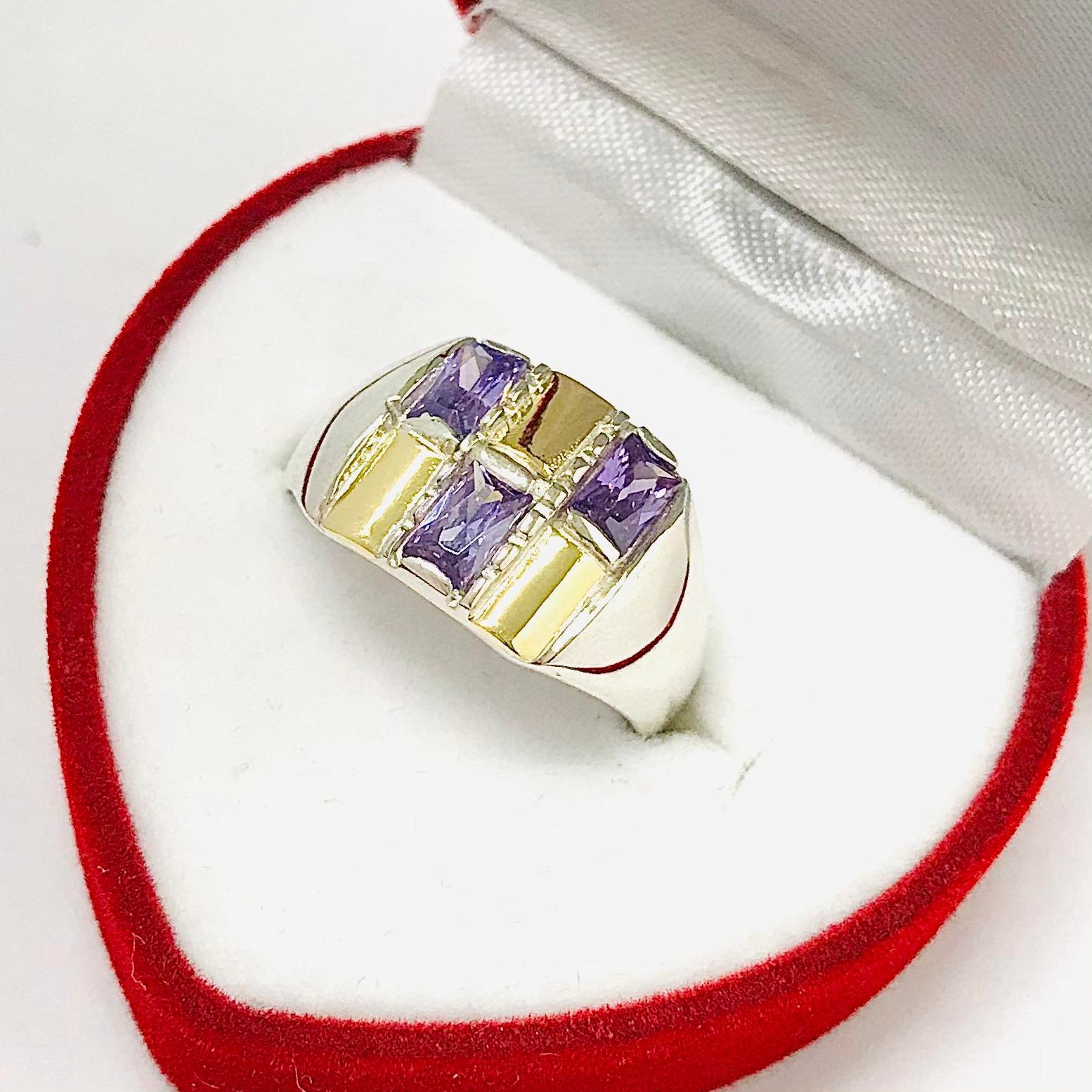 » Anillo Aronyan con cubic amatista de Plata y Oro