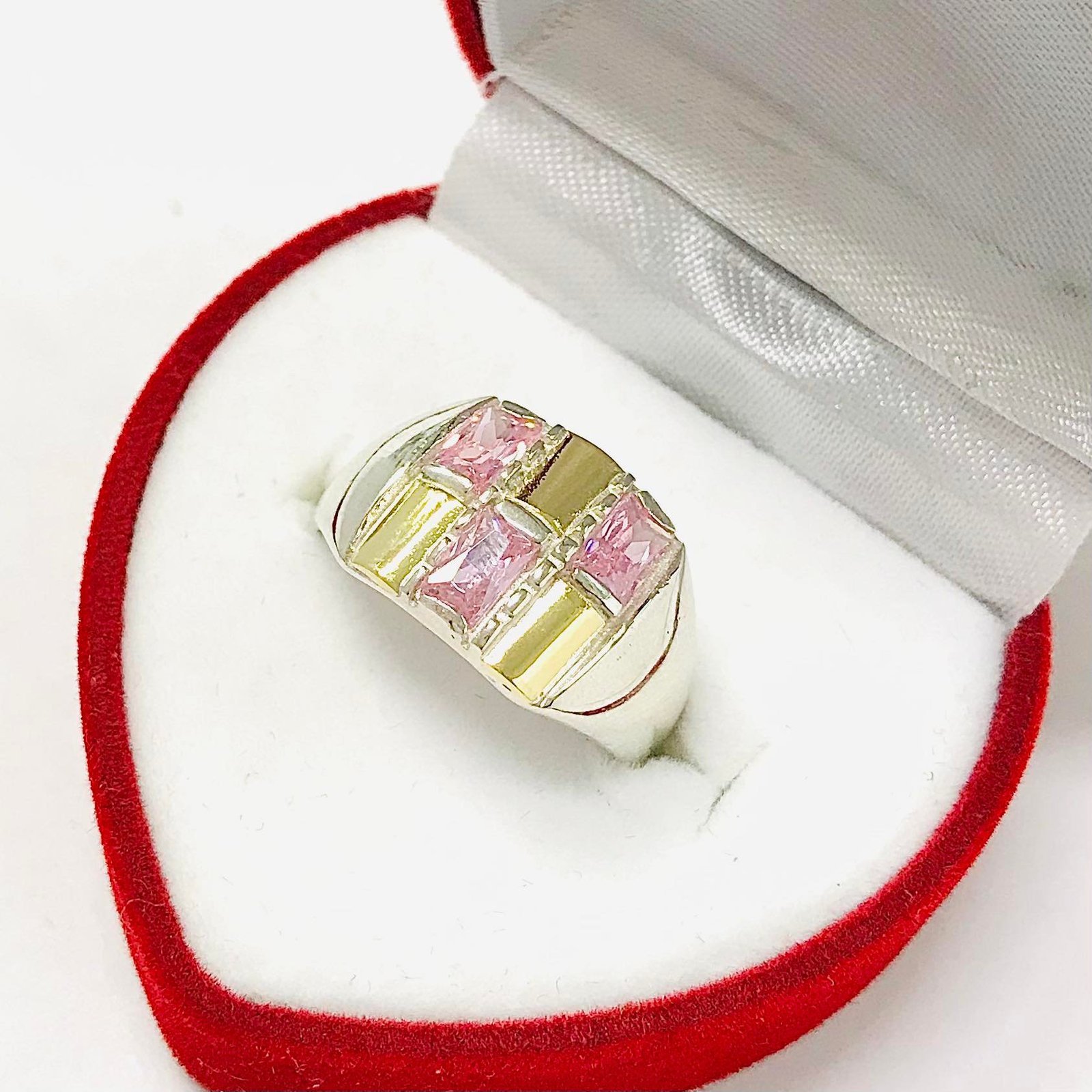 Anillo Aronyan con cubic rosa de Plata y Oro