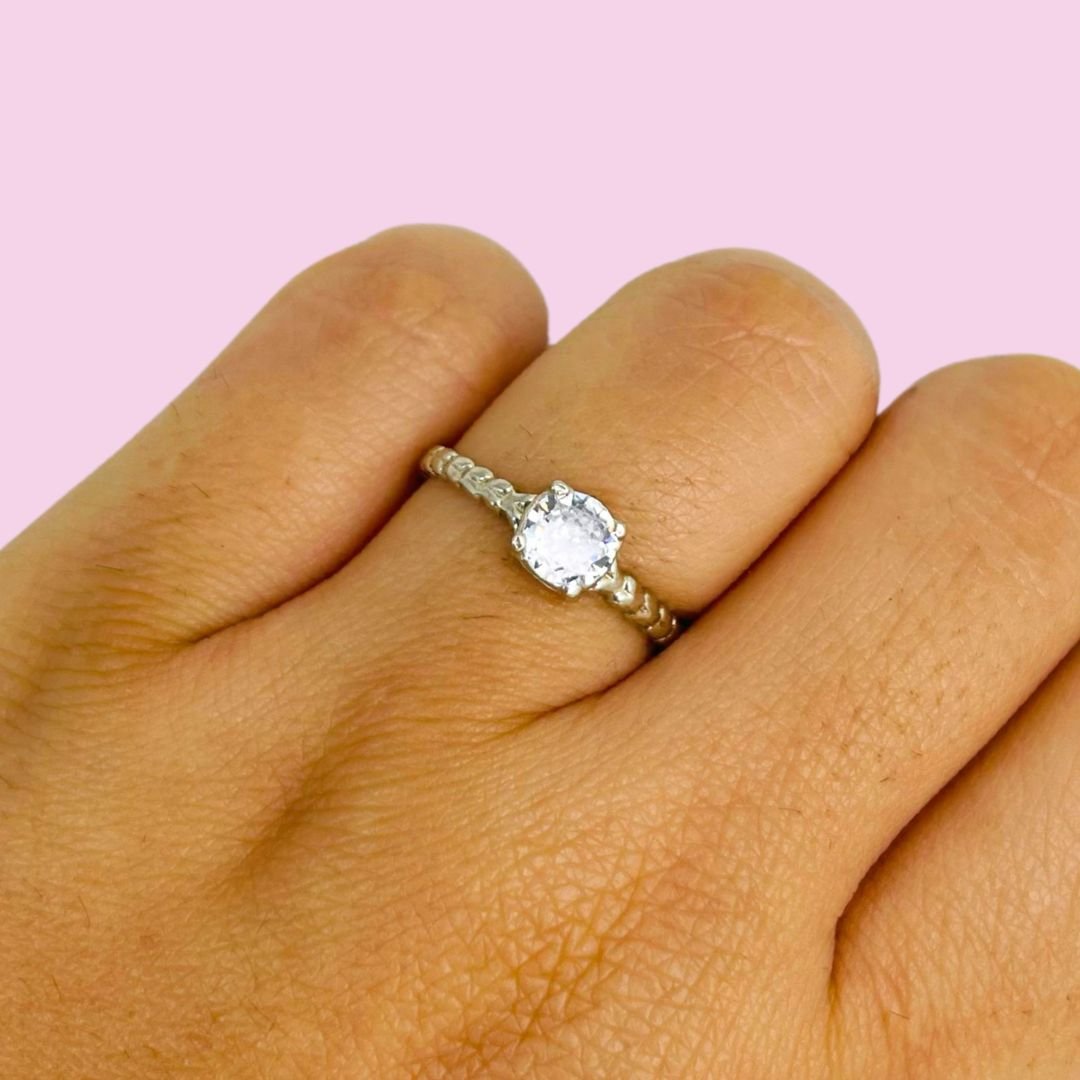Anillo Solitario de Compromiso cubic Blanco de Plata 925