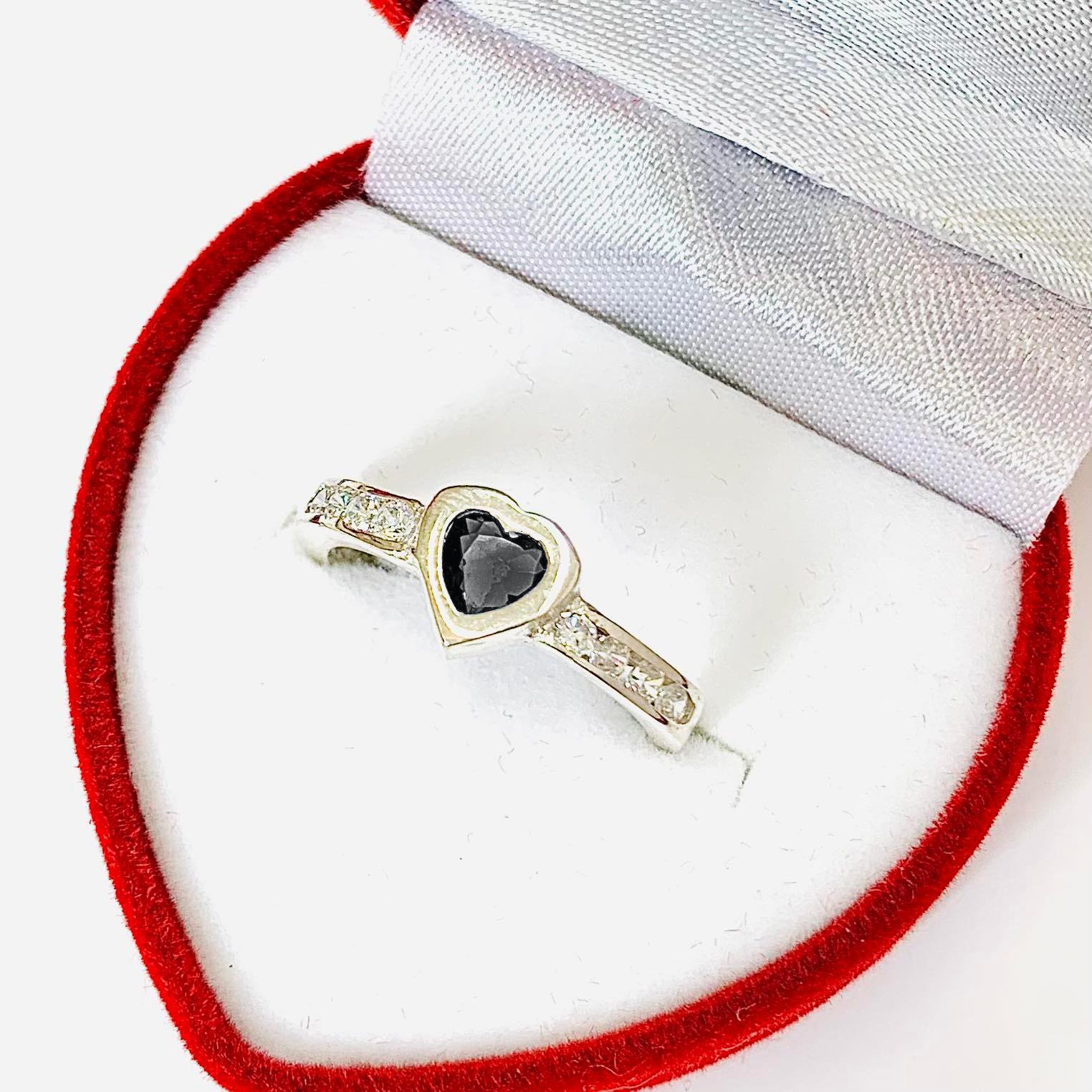 Anillo Medio sin fin corazon negro de Plata 925