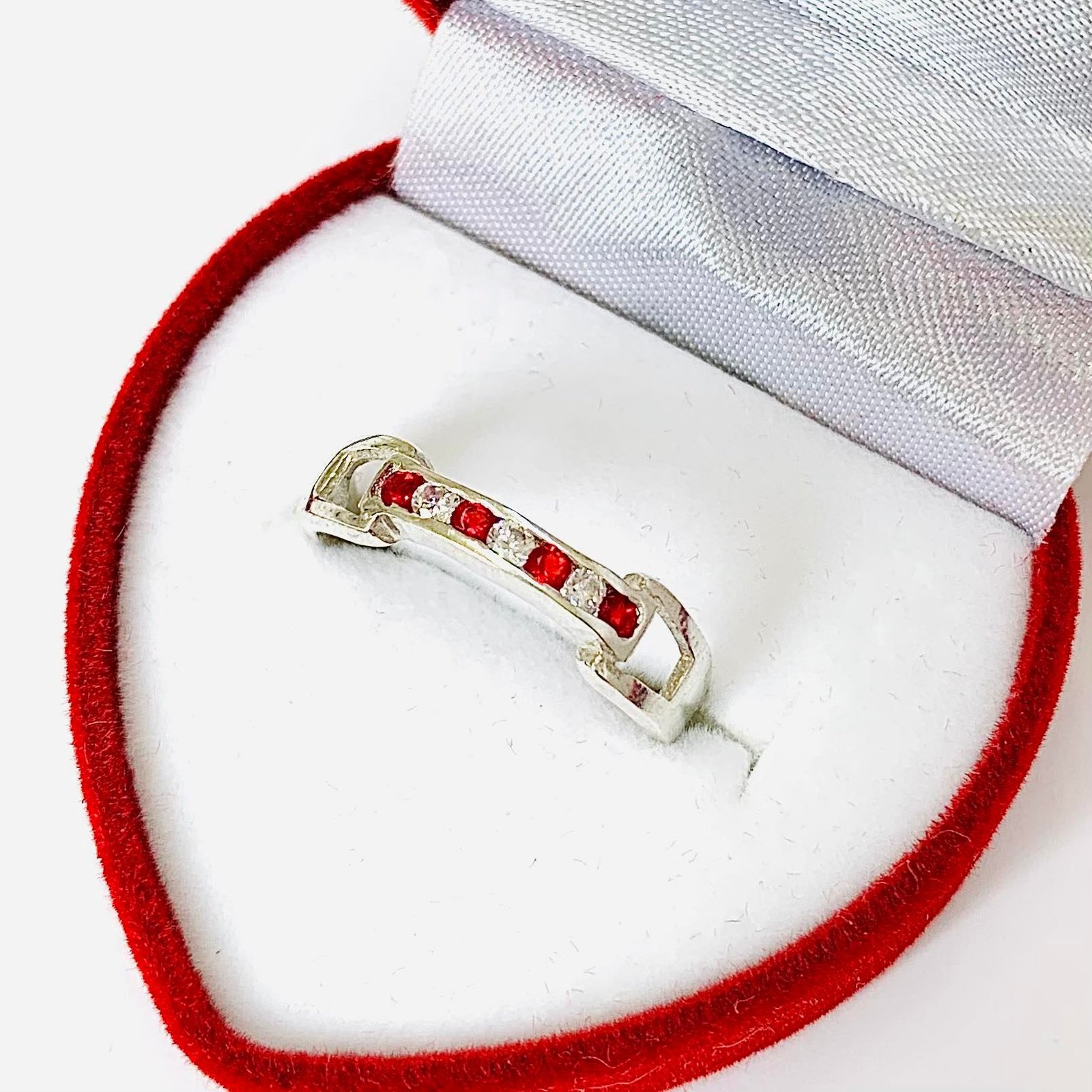 Anillo Medio Sin fin Roma con piedras Blanco-Rubi de Plata925