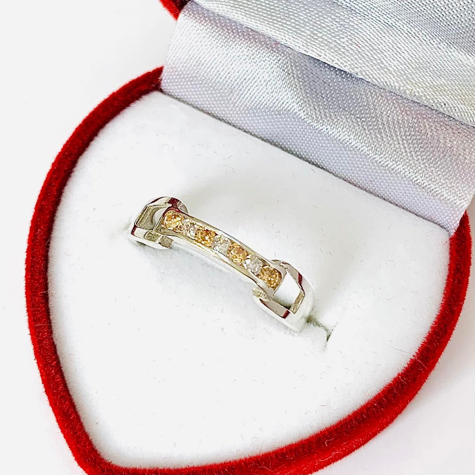 Anillo Medio Sin fin Roma con piedras Blanco-ambar de Plata925