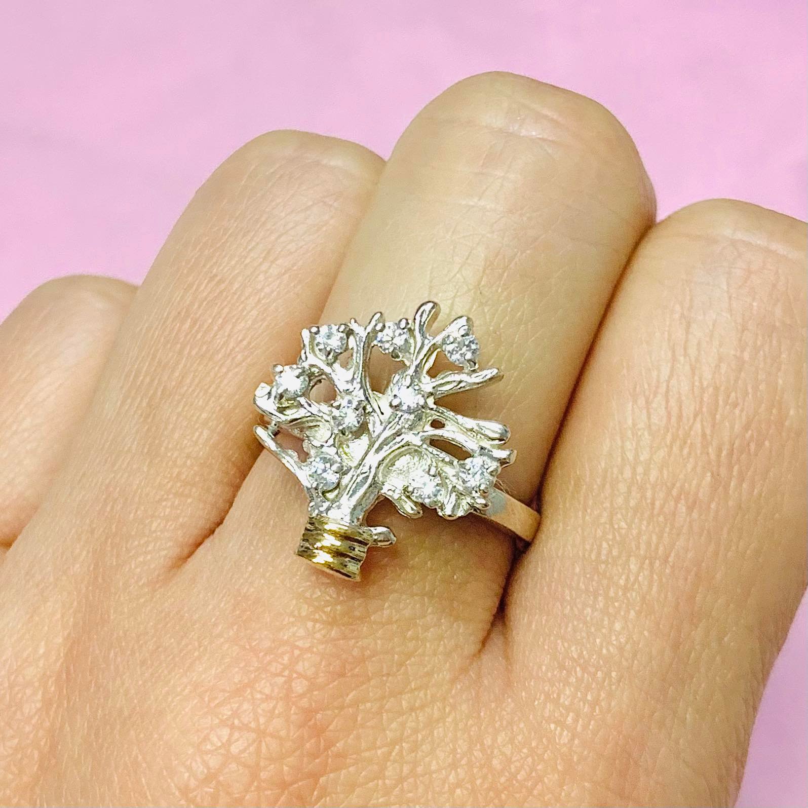 » anillo arbol de vida con cubic blanco