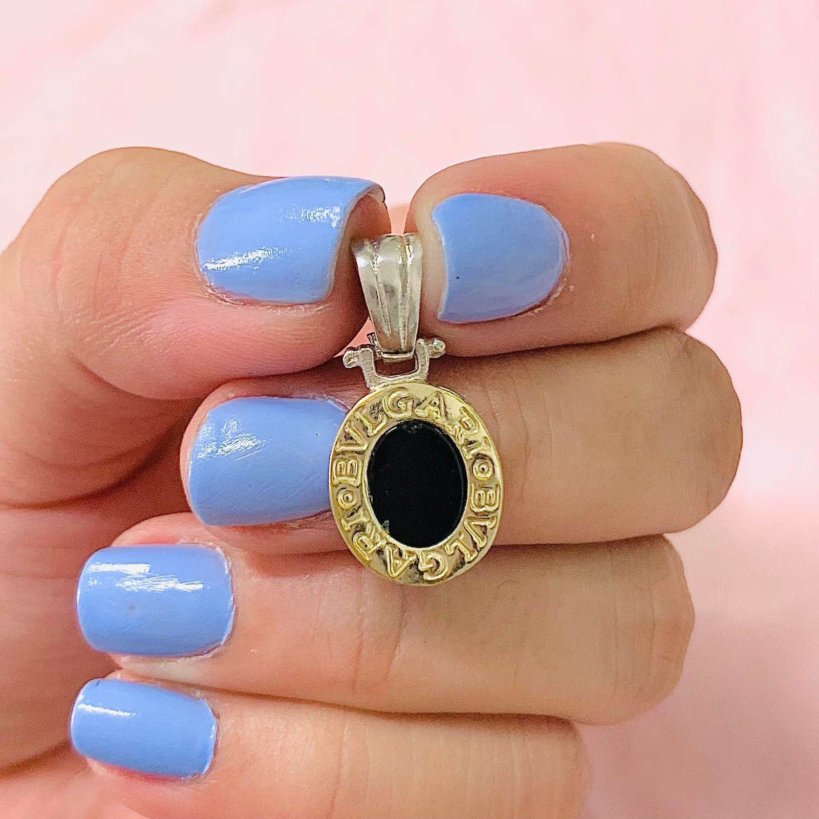 Dije grande Ovalado BVL con onix de Plata y Oro