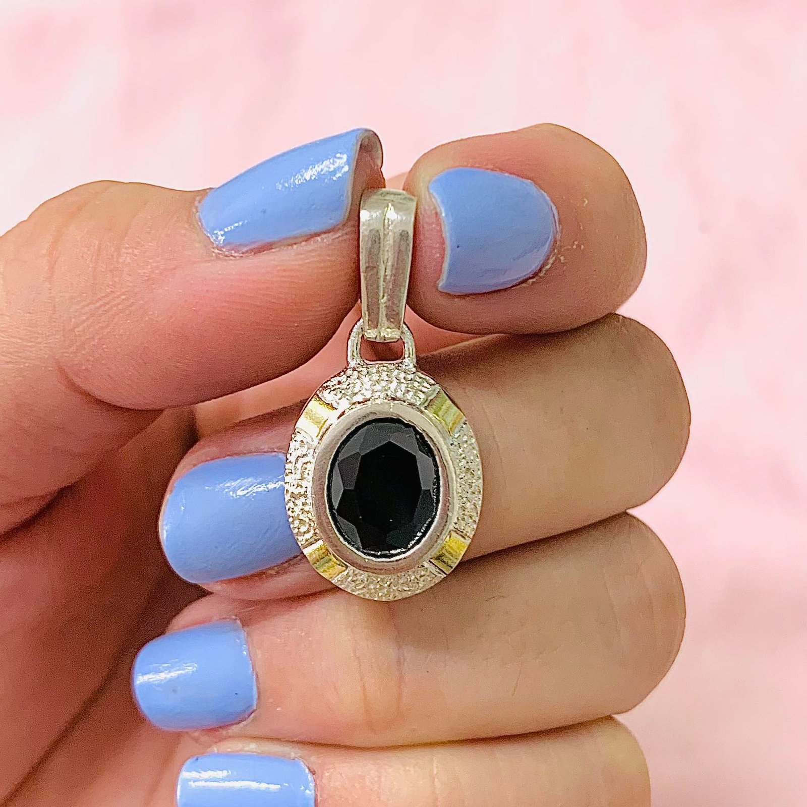 Dije Aristocratico con Piedra Oval negro Plata y Oro