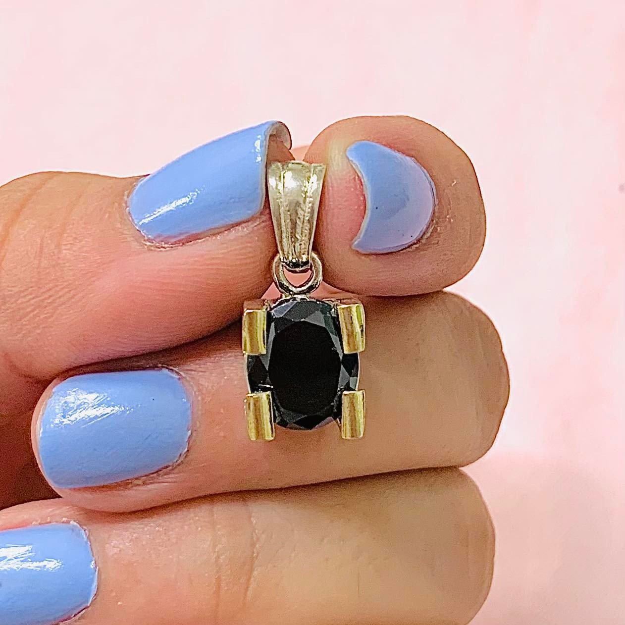 Dije Favorito con Cubic Oval negro Plata y Oro
