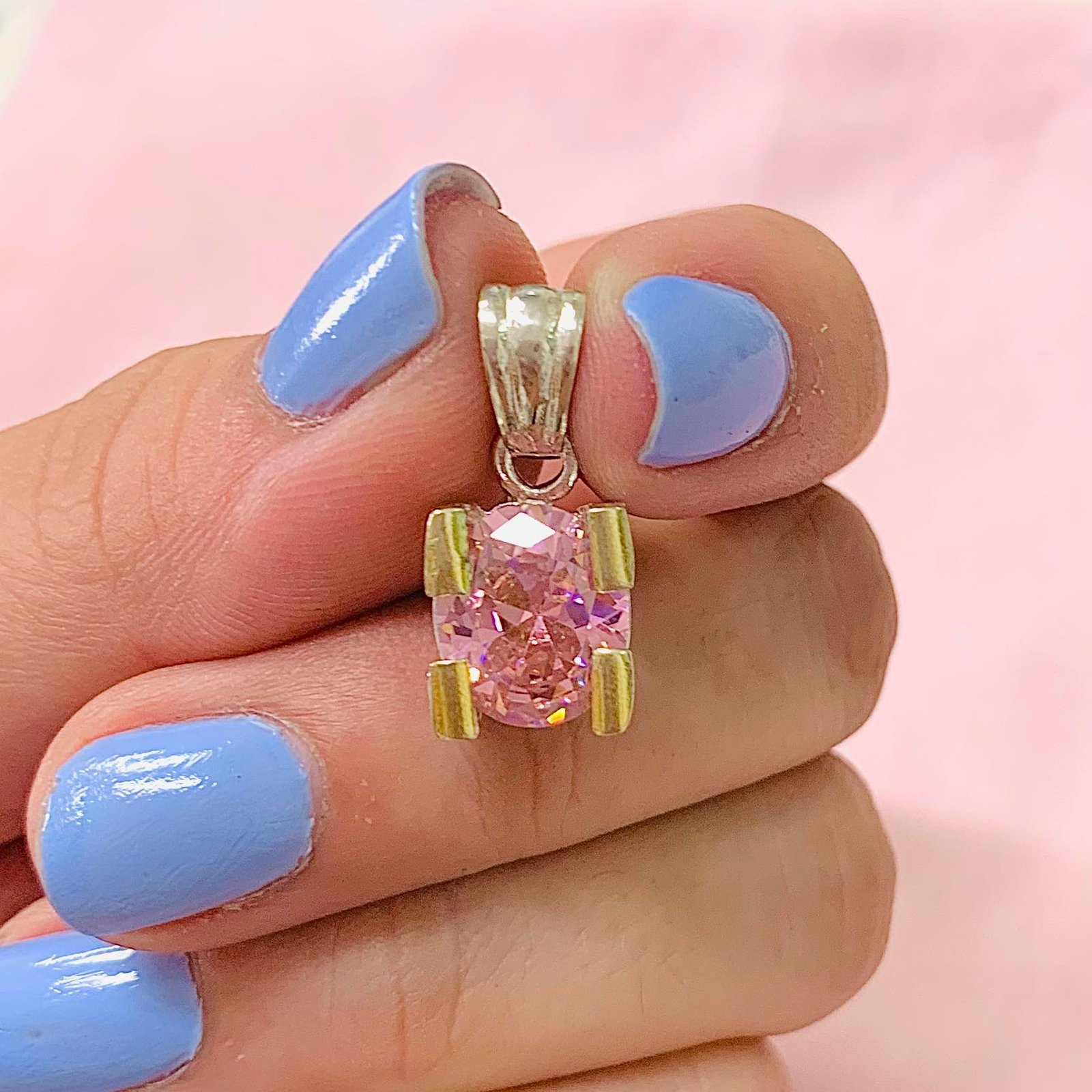 Dije Favorito con Cubic Oval rosa Plata y Oro