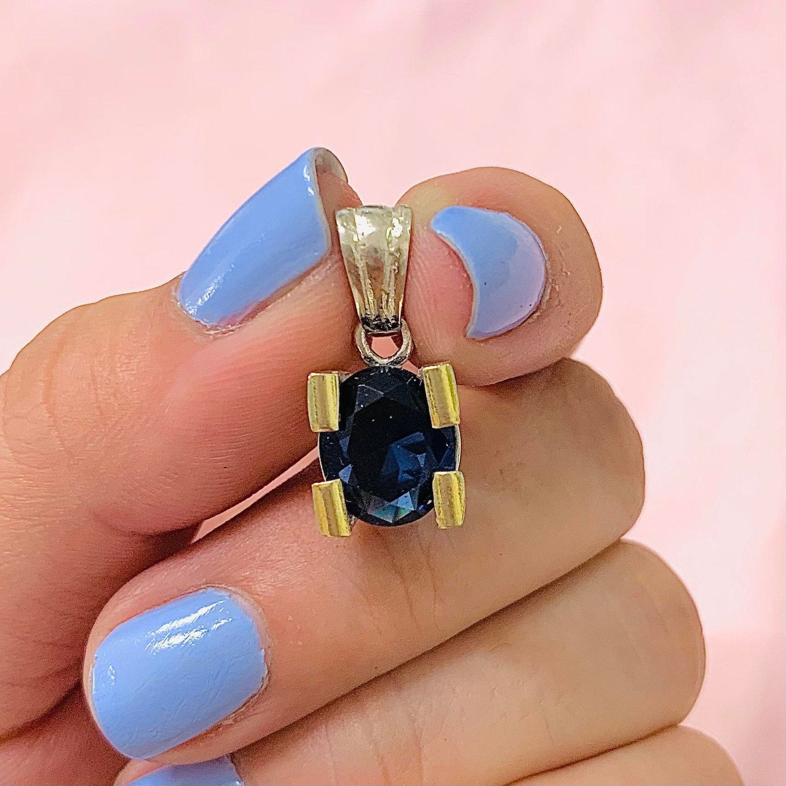 Dije Favorito con Cubic Oval zafiro Plata y Oro