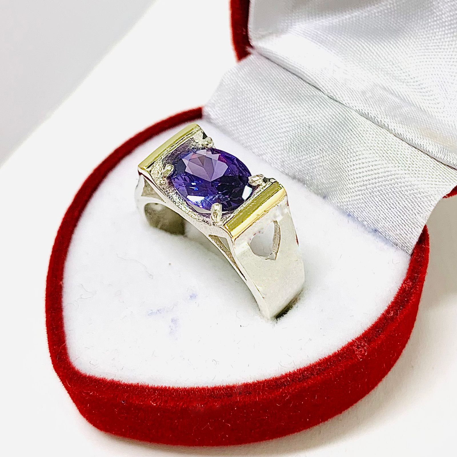 Anillo Angelica con cubic ovalado amatista Plata y oro