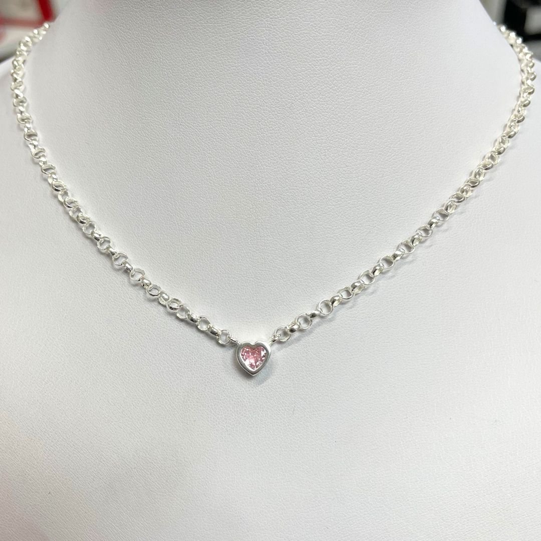 Cadena Rolo con Susanita Corazon Rosa de Plata 925