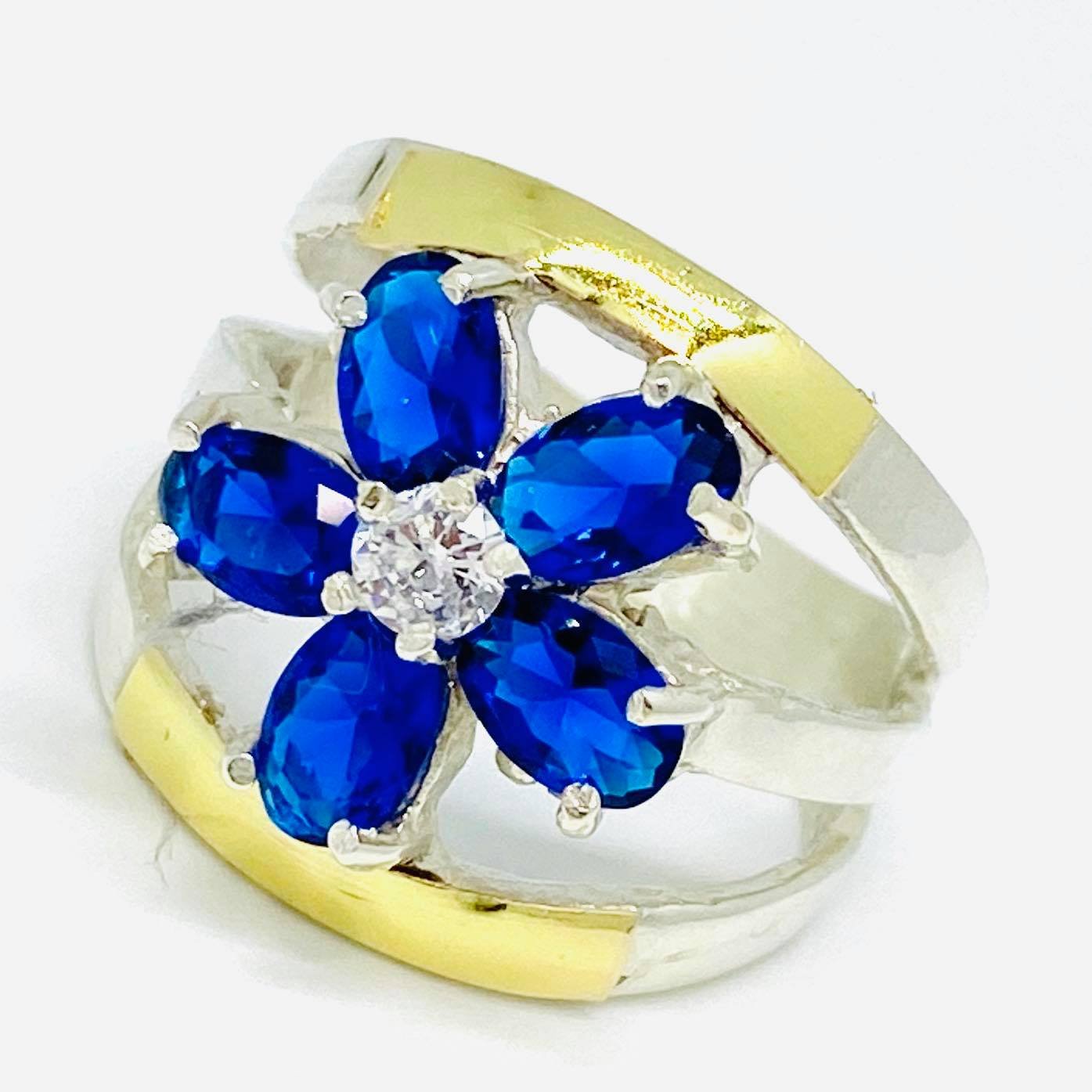 Artículo: AP 002-2Anillo flor con cubic Zafiro
