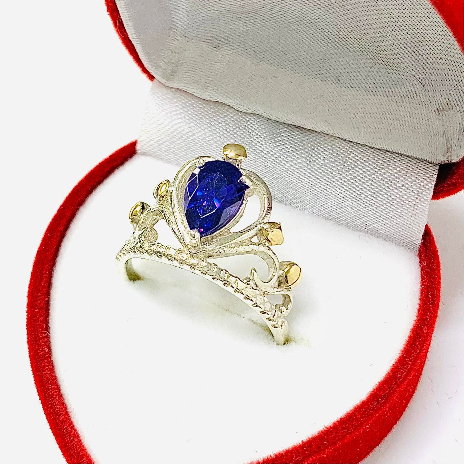 Artículo: AP 077-9Anillo corona con cubic ovalado Rubi en corazon