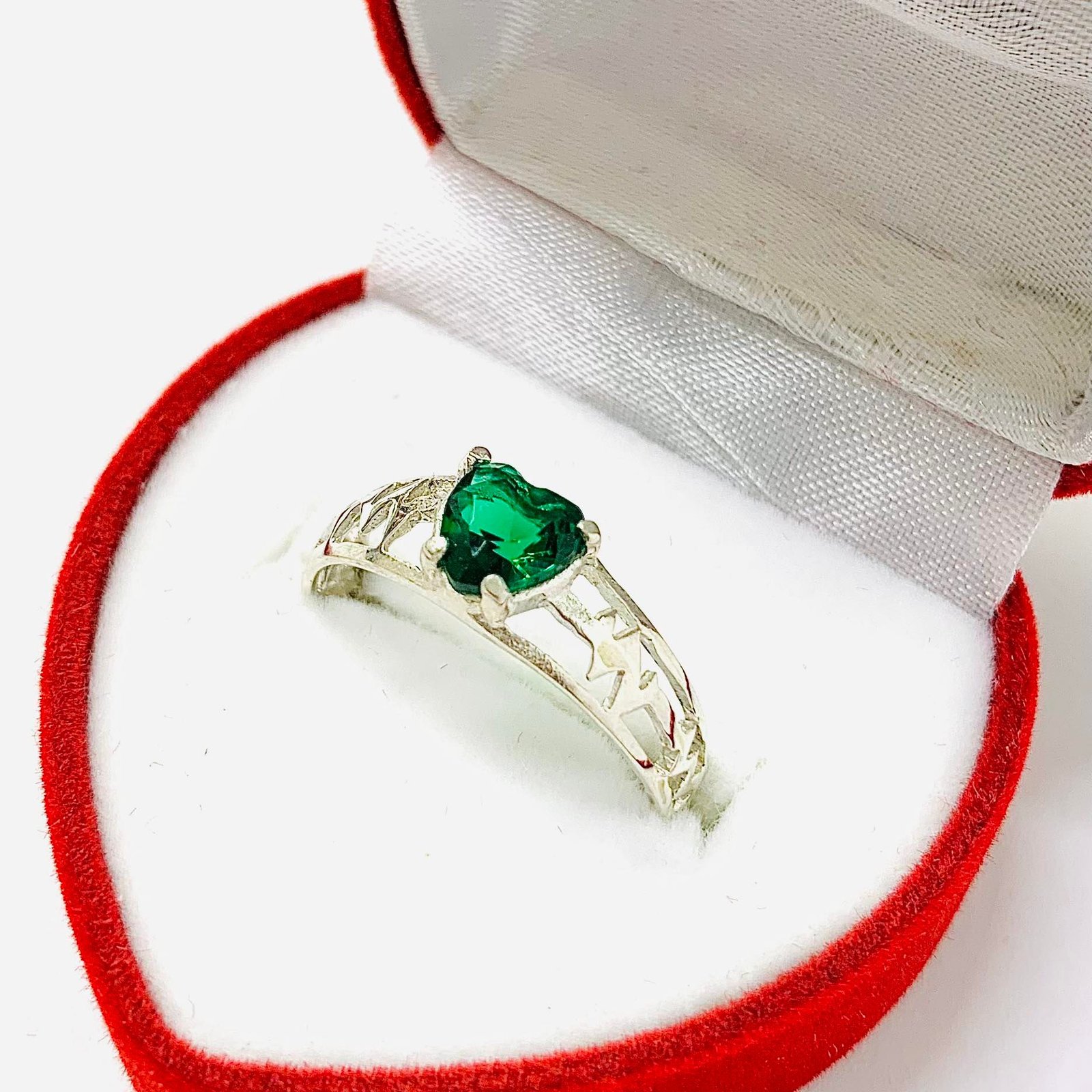 Anillo Cardio corazon esmeralda de Plata 925