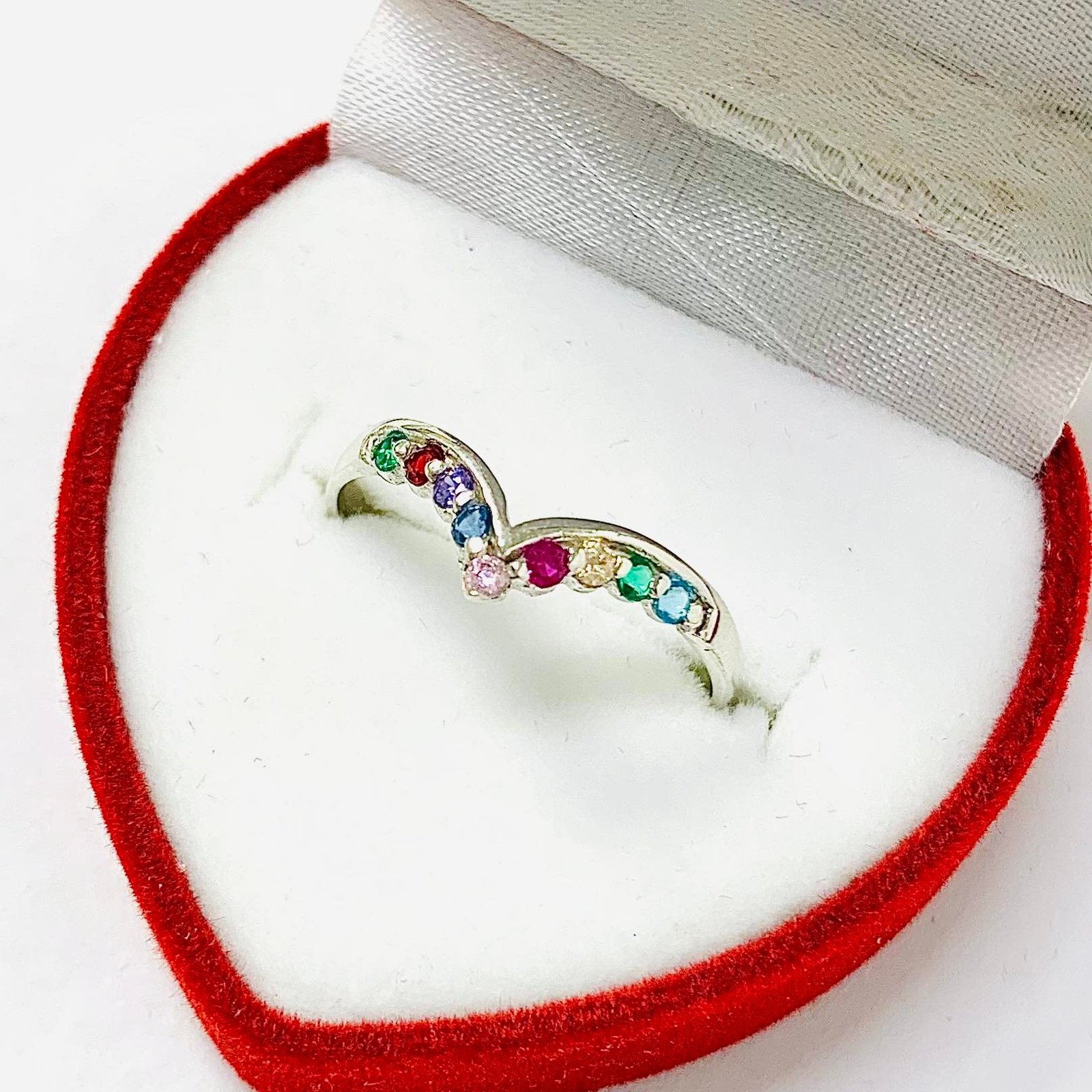 Anillo Forma V Micropave multicolor de Plata 925