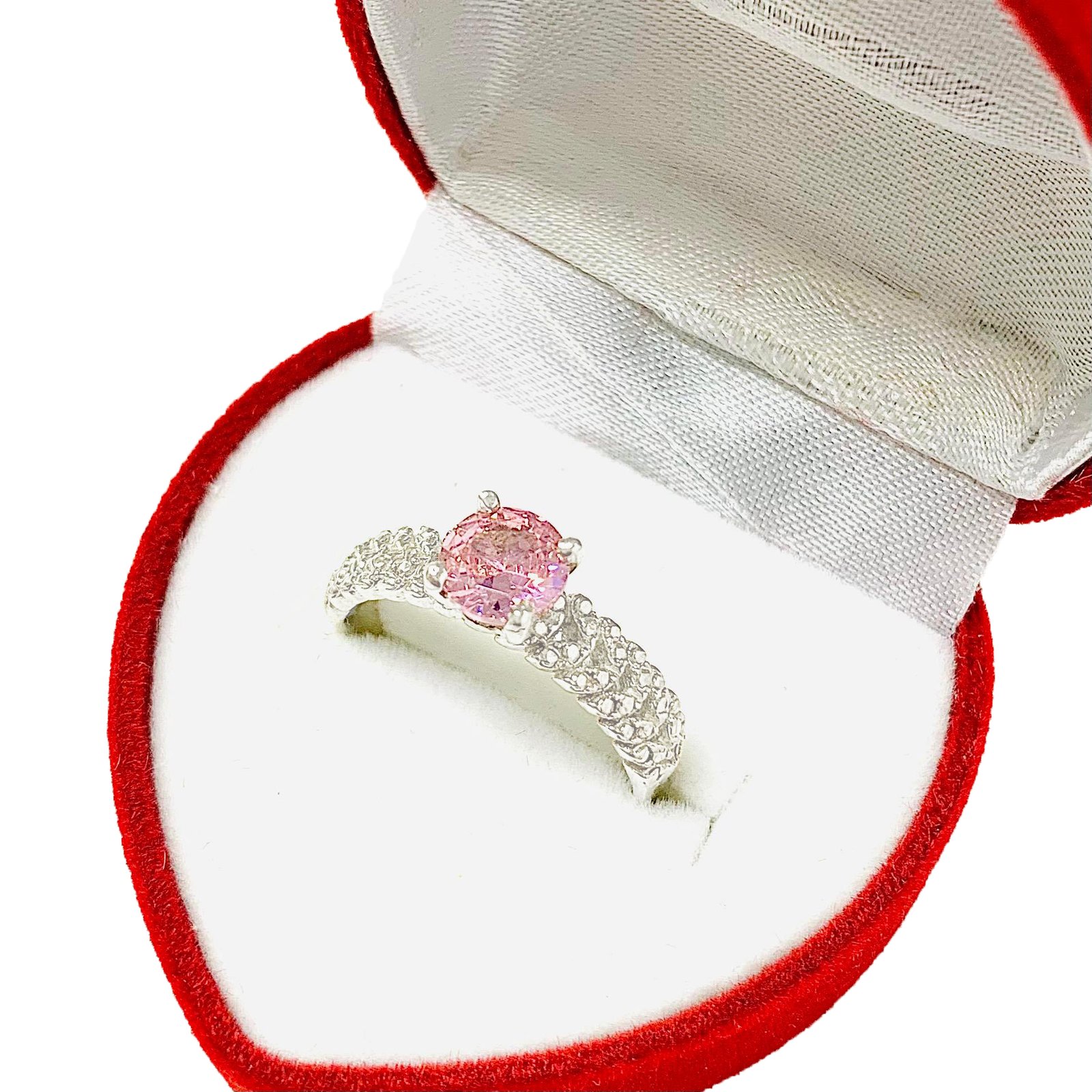 Anillo Solitario con Piedra rosa de Plata 925