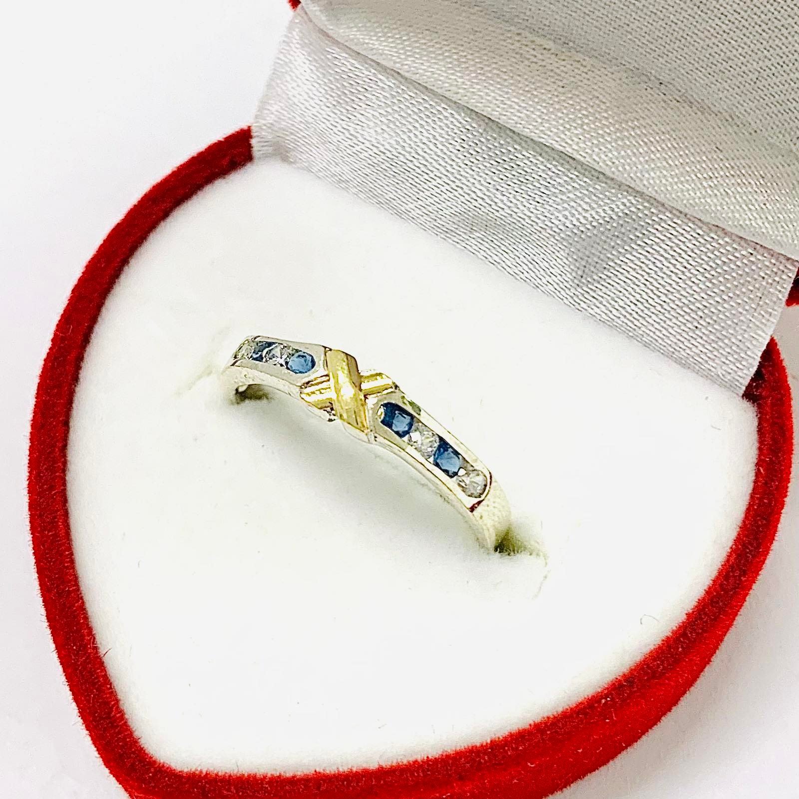 Anillo Sin Fin con X Blanco-zafiro de Plata y Oro