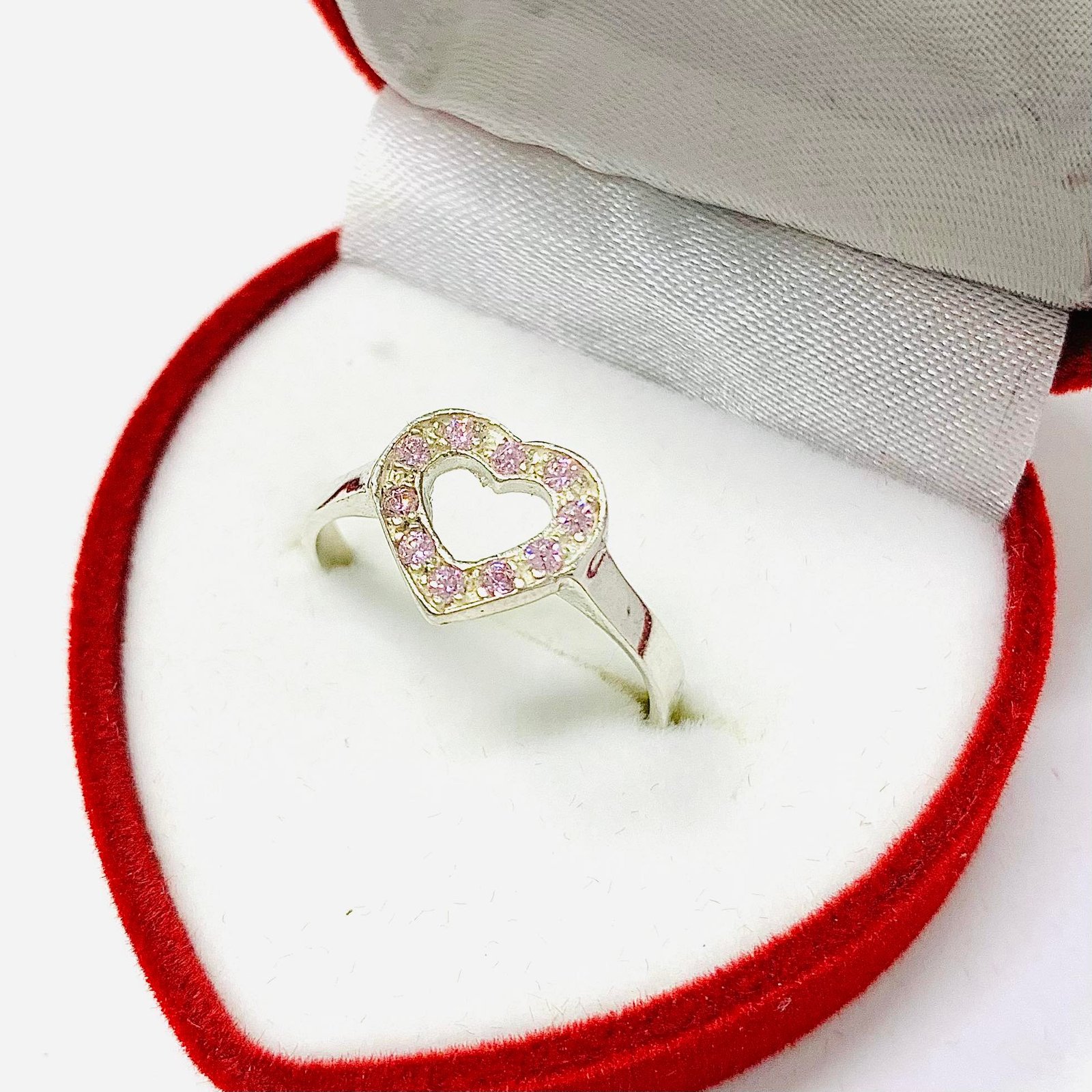 Anillo Corazon Micropave Rosa de Plata 925