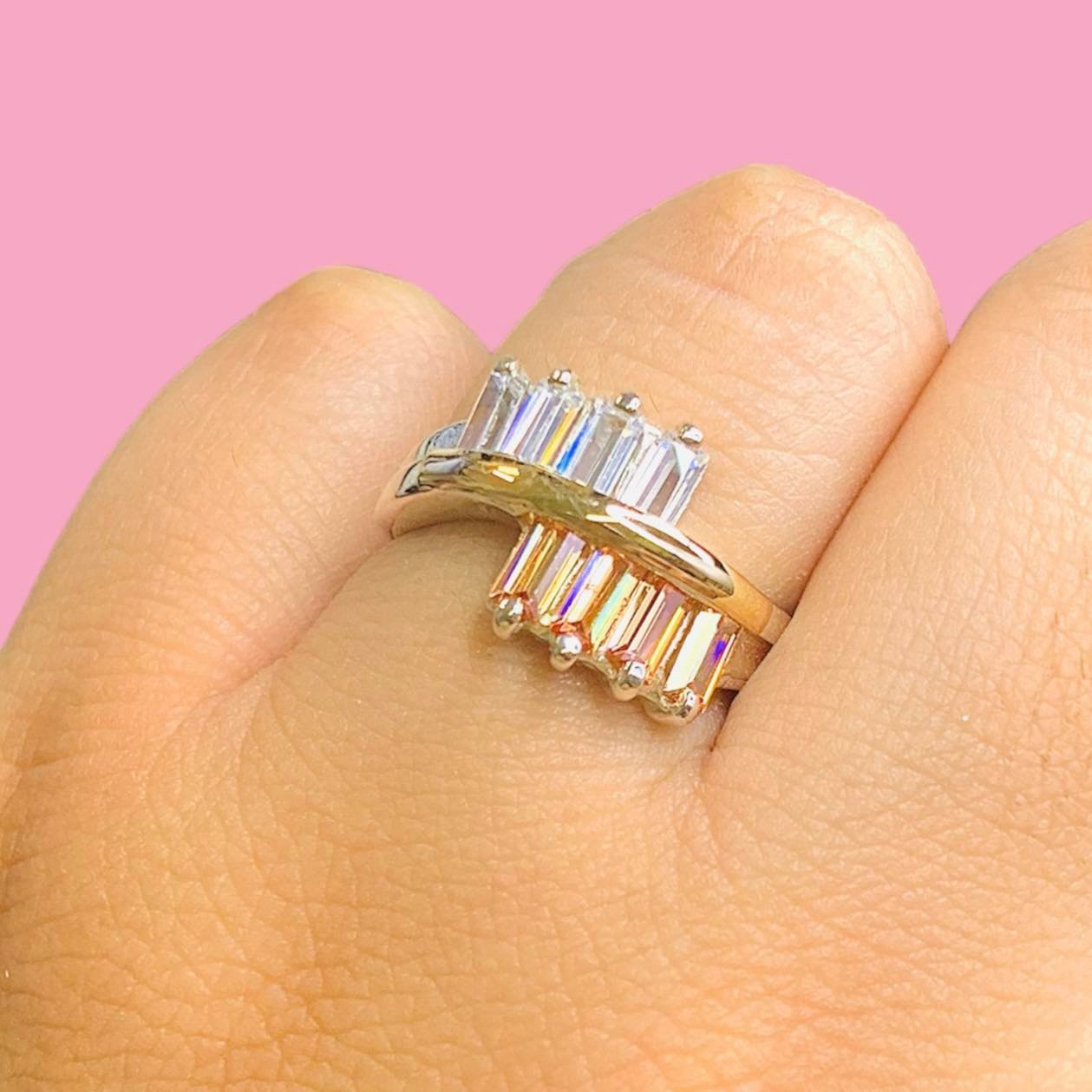 Anillo Avril con baguette ambar-blanco Plata y Oro