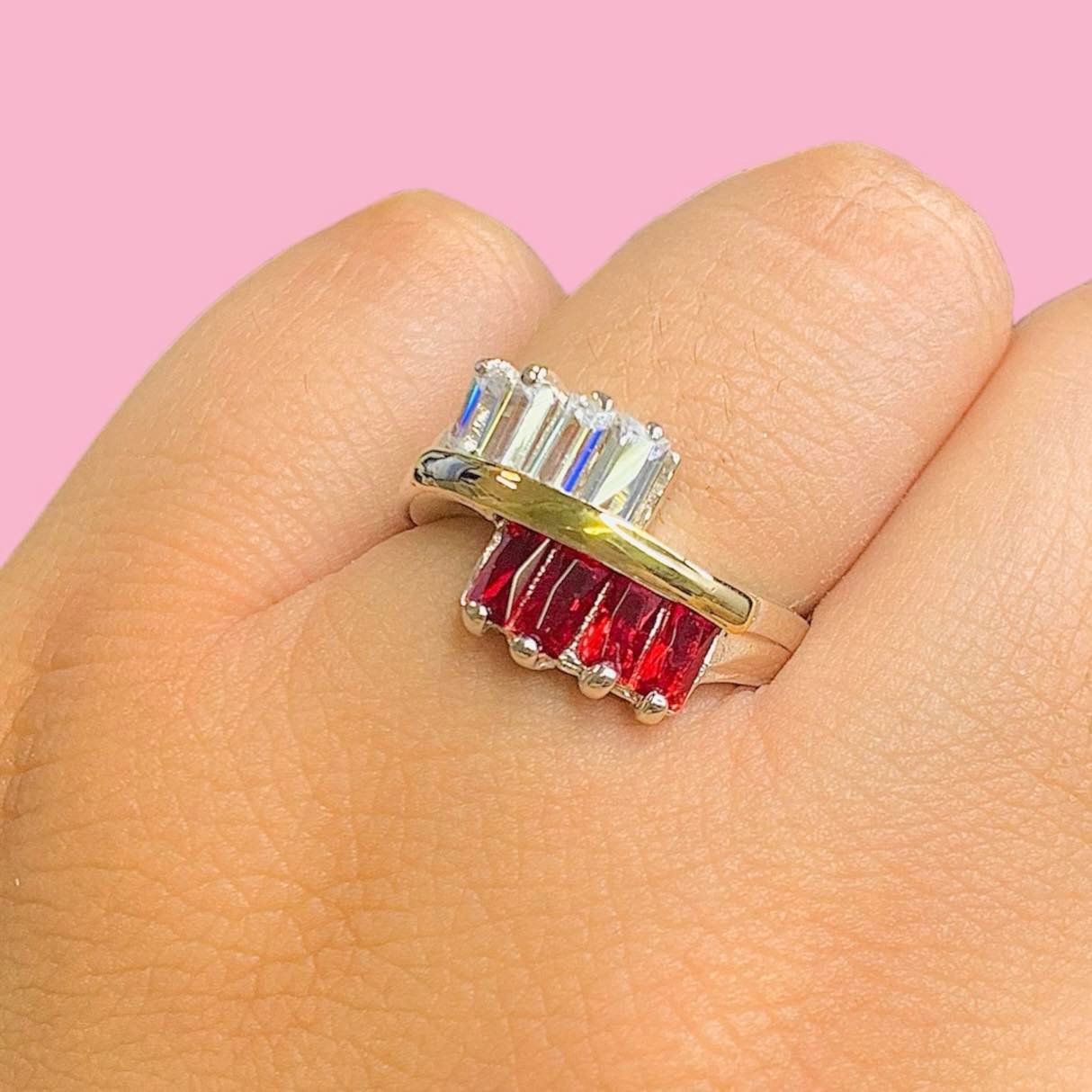 Anillo Avril con baguette rubi-blanco Plata y Oro