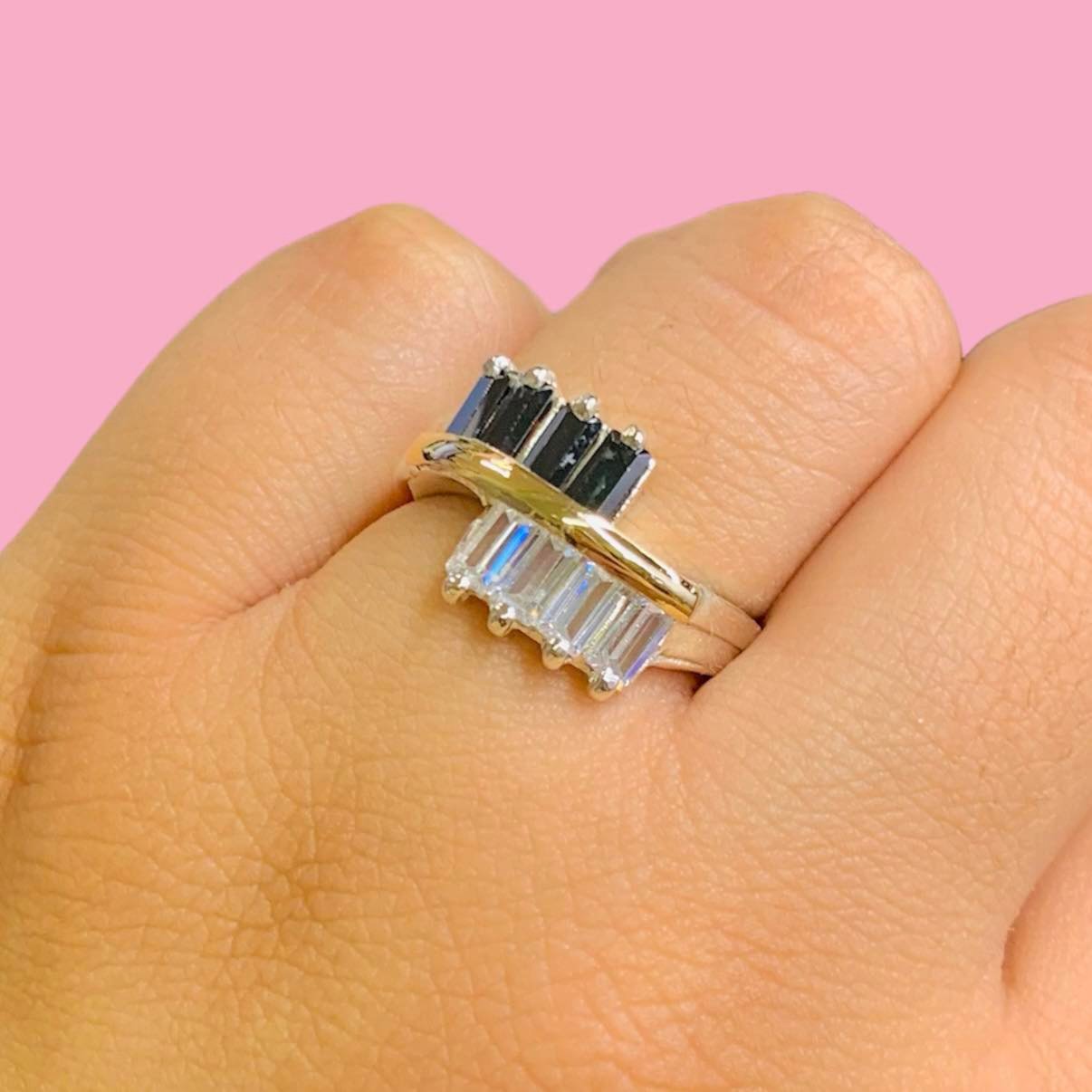 Anillo Avril con baguette negro-blanco Plata y Oro
