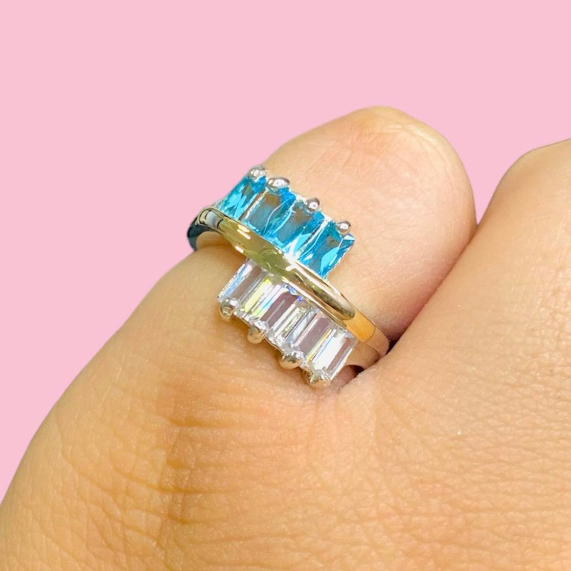 Anillo Avril con baguette Agua marina-blanco Plata y Oro