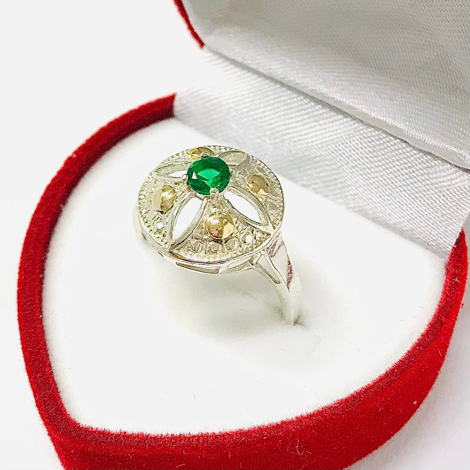 Anillo imperial con cubic esmeralda de Plata y Oro