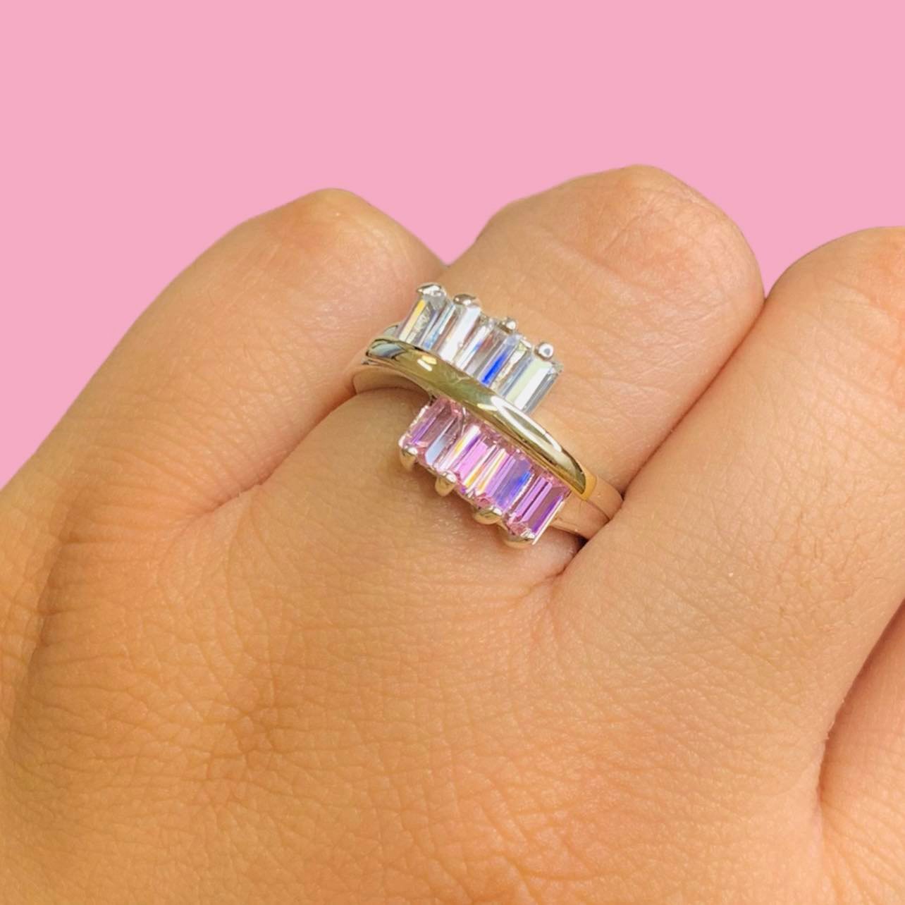 Anillo Avril con baguette rosa-blanco Plata y Oro