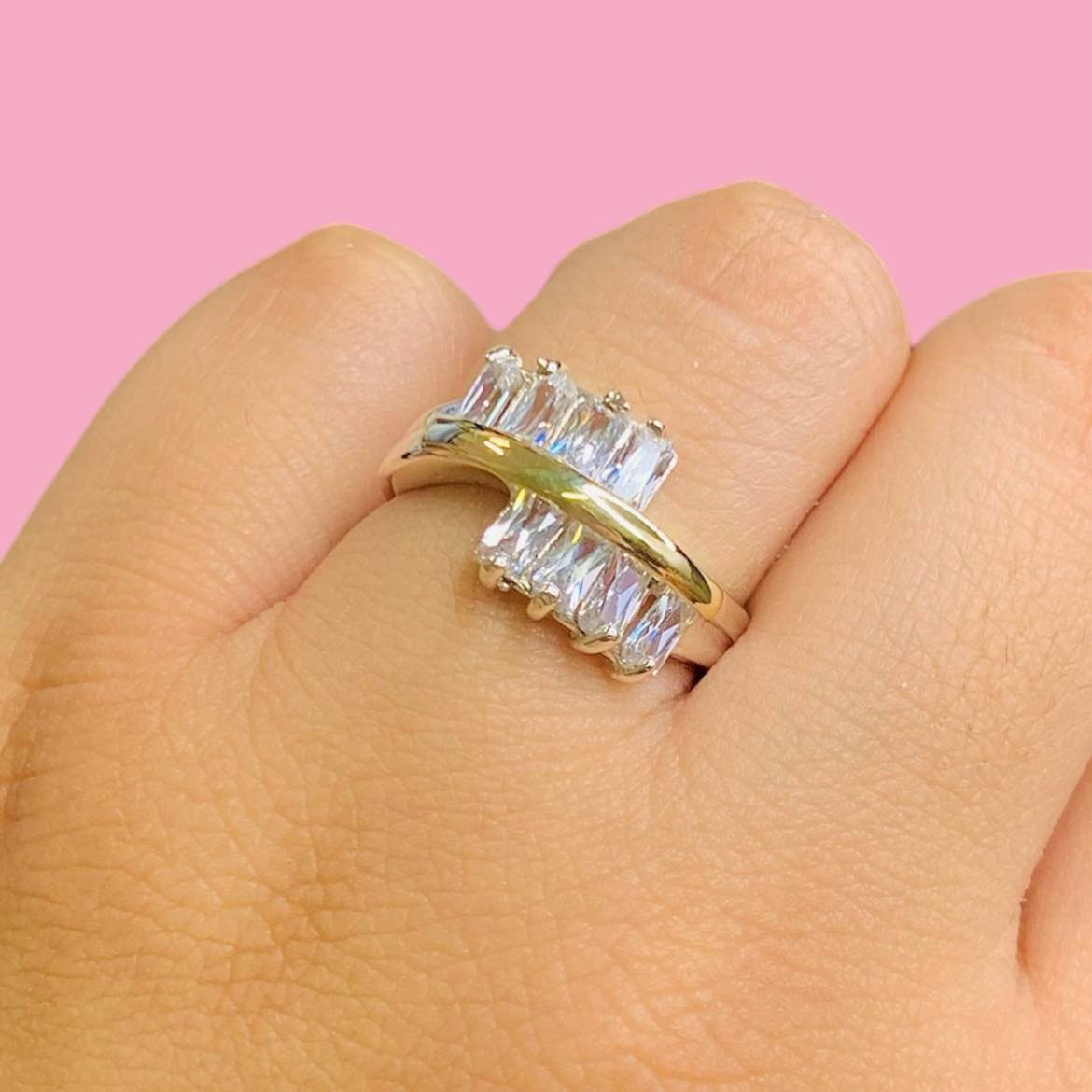 Anillo Avril con baguette blanco Plata y Oro