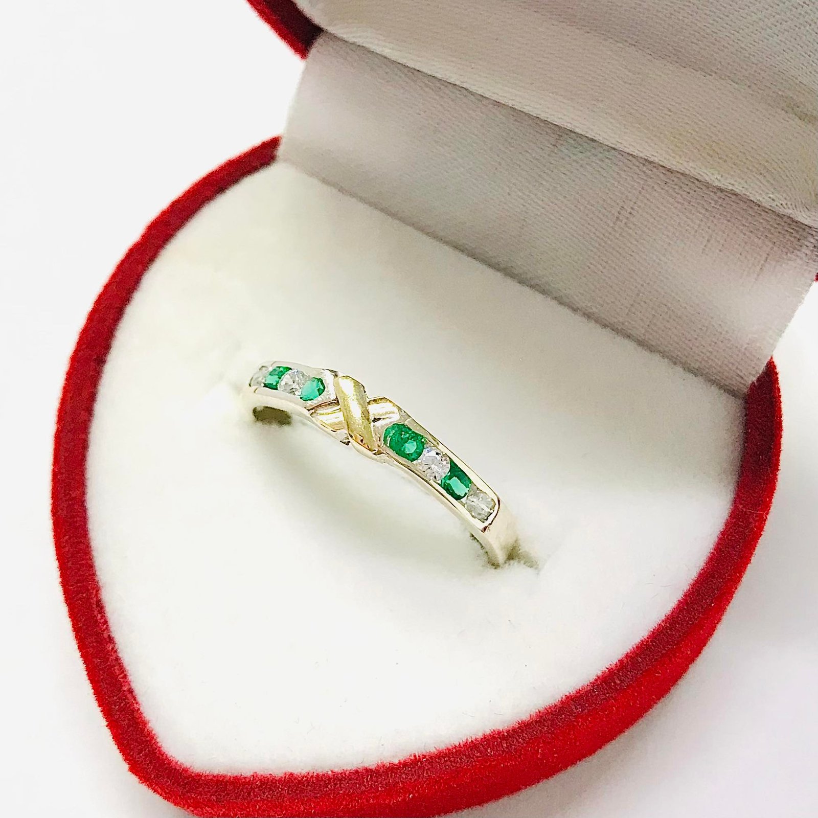 Anillo Sin Fin con X Blanco-Esmeralda de Plata y Oro