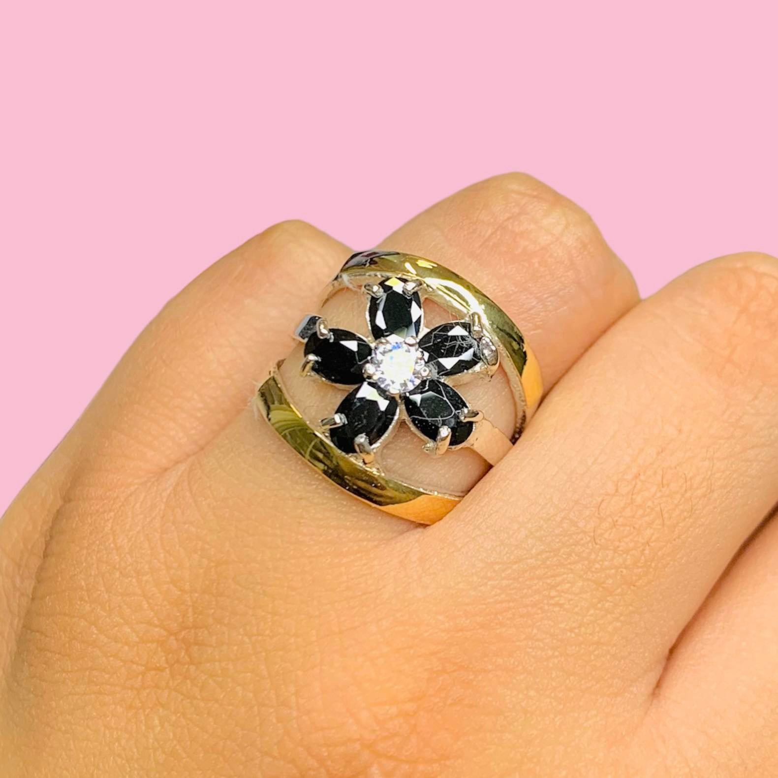 Artículo: AP 002-4Anillo flor con cubic Negro