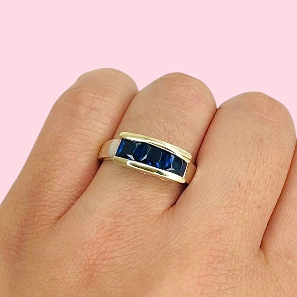 Anillo TRIO Medio Sinfin Ancho Zafiro Plata y Oro