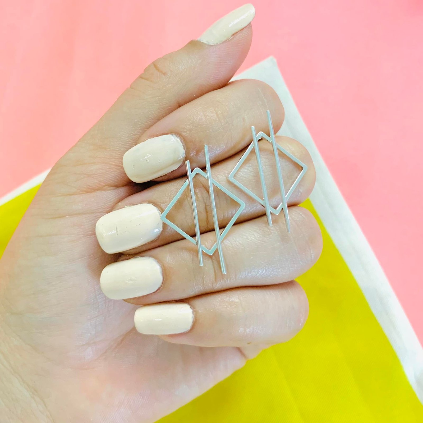 AROS ROMBO CON LINEAS DE ACERO BLANCO