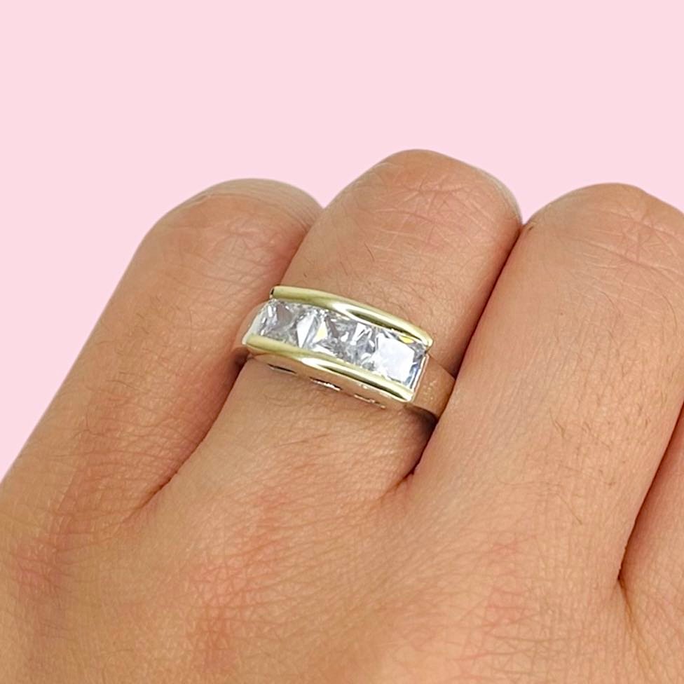 Anillo TRIO Medio Sinfin Ancho blanco Plata y Oro