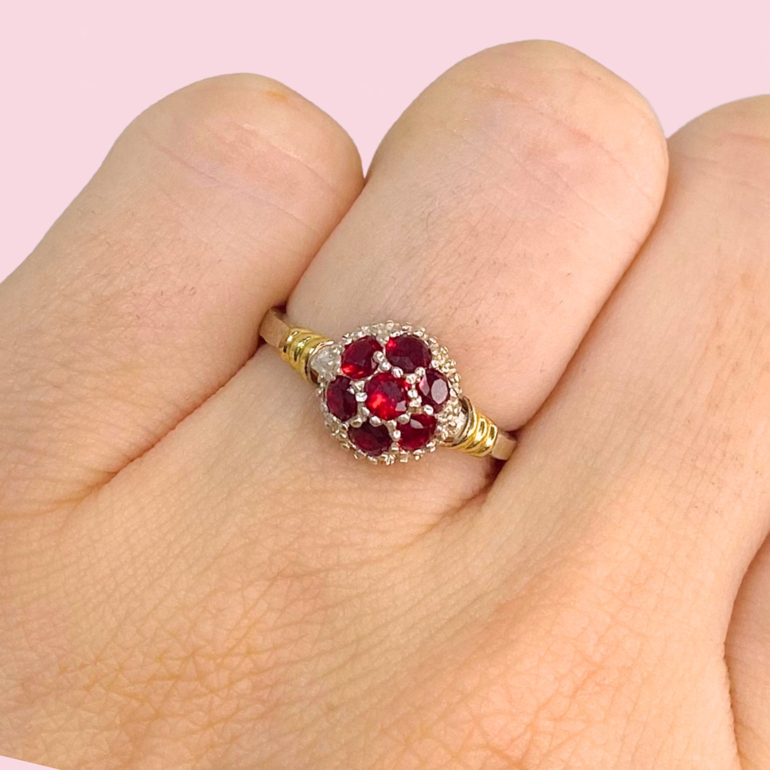 » Anillo frutillita con cubic rubi Plata y Oro