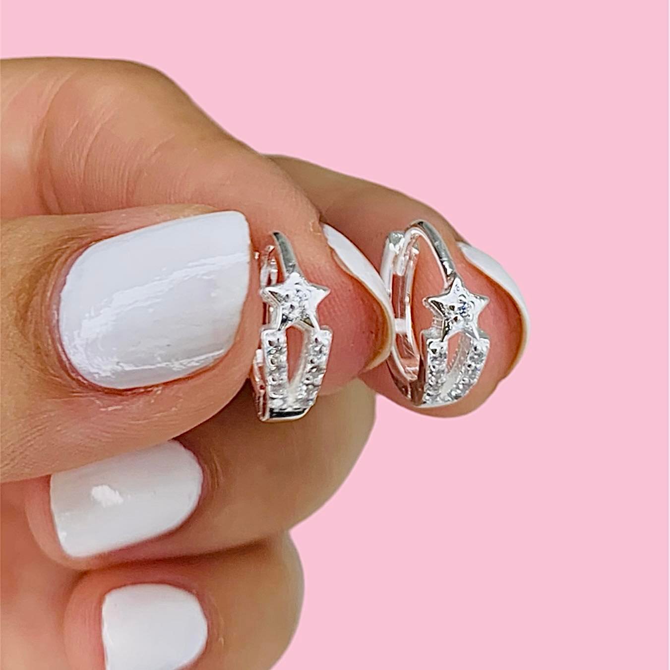Aros Argolla Estrella con Micropave de Plata Italiana