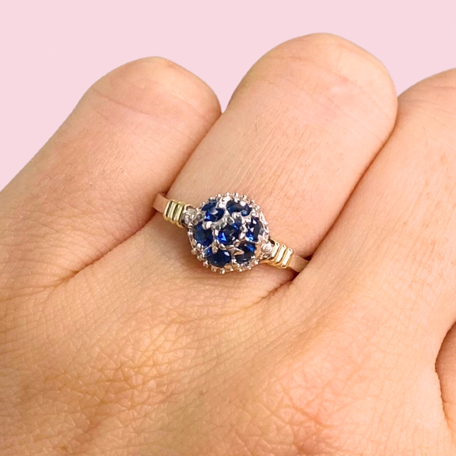anillo frutillita con cubic zafiro Plata y Oro