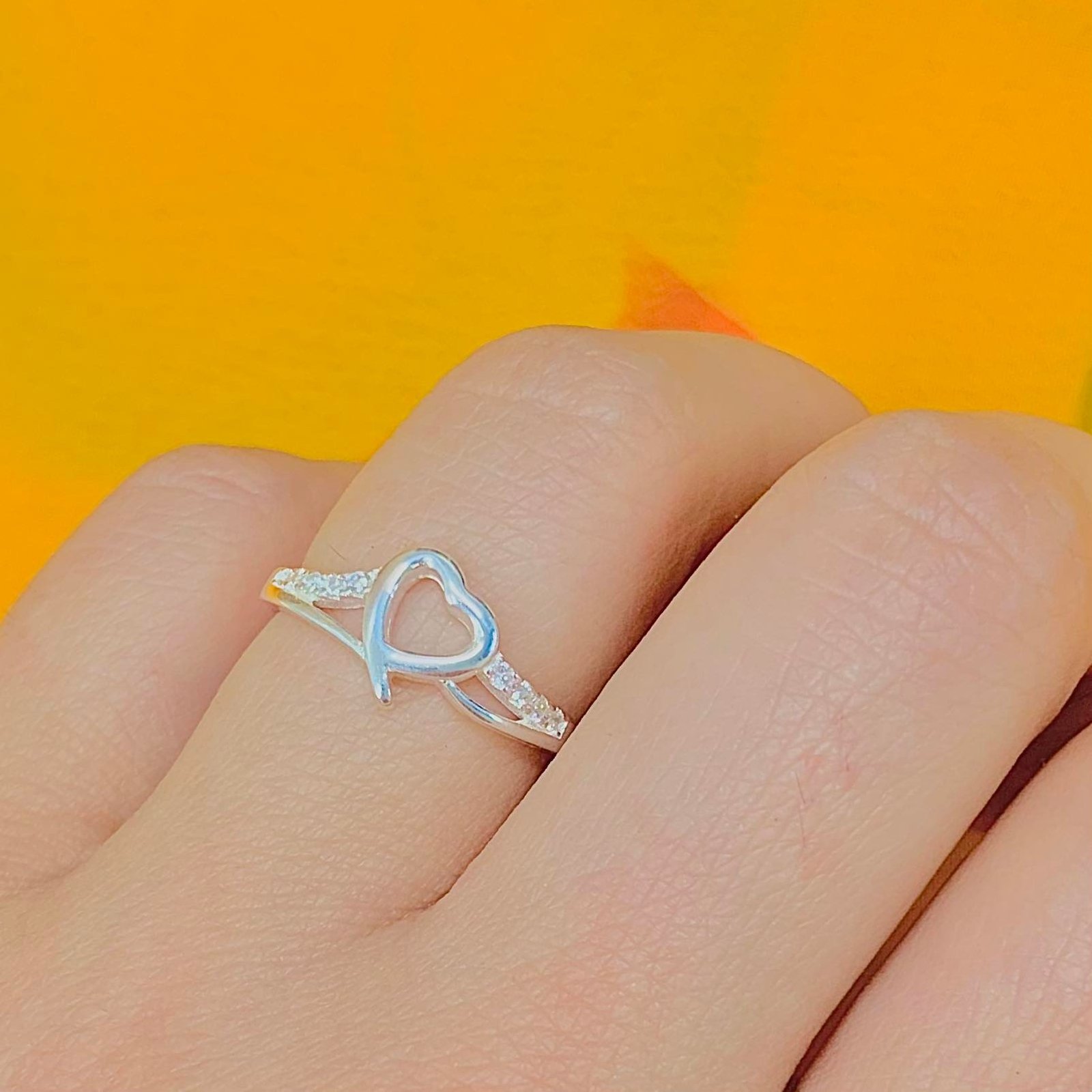 Anillo Medio Sin Fin Corazon con Micropave Plata Italiana