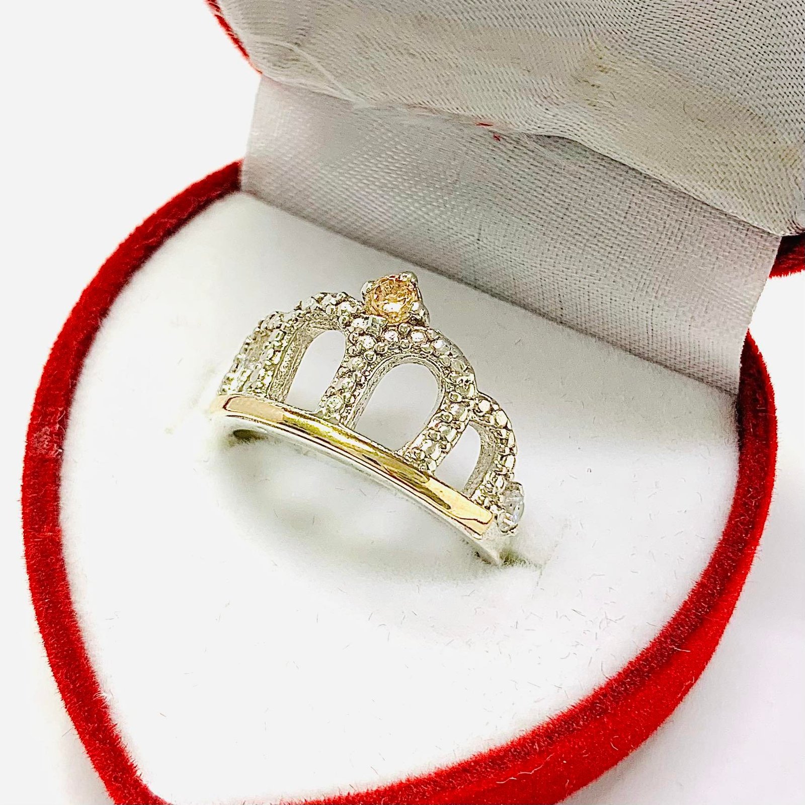 Anillo Corona Alysa Con Cubic Ambar de Plata y Oro