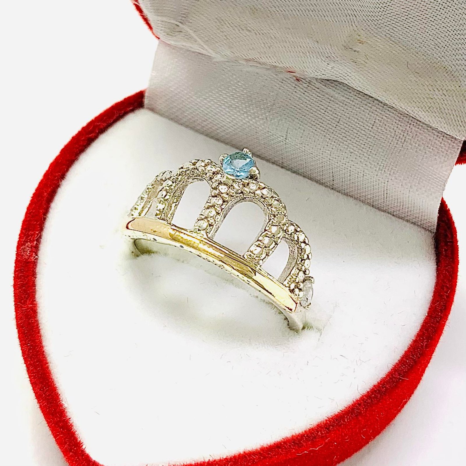 Anillo Corona Alysa Con Cubic Agua de Plata y Oro