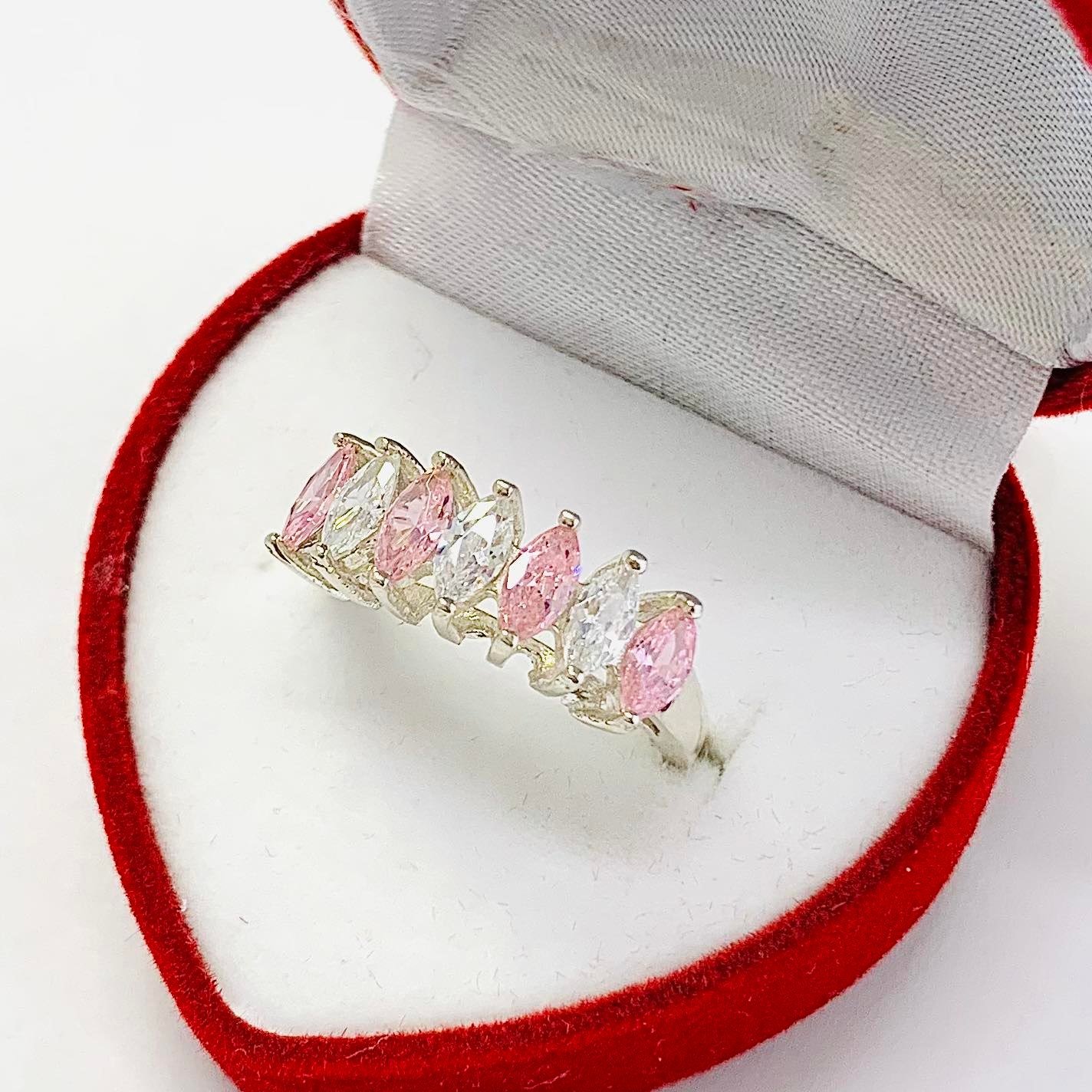 Anillo Medio Sin Fin con Marquesitas Rosas y Blancas de Plata 925