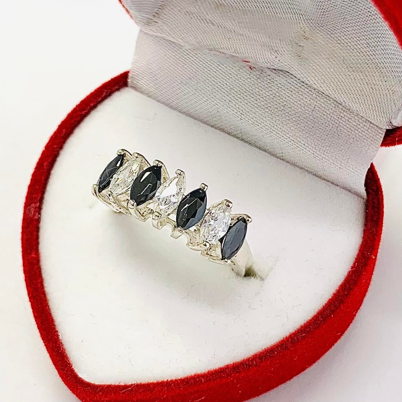 Anillo Medio Sin Fin con Marquesitas Negras y Blancas de Plata 925