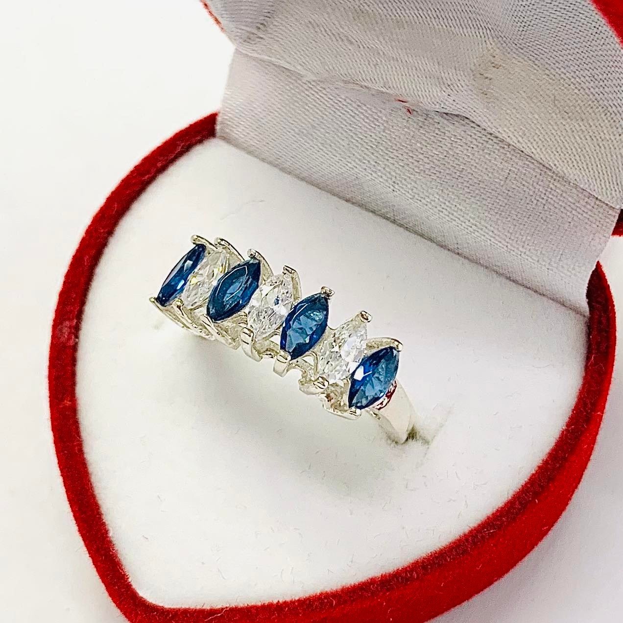 Anillo Medio Sin Fin con Marquesitas Azules y Blancas de Plata 925